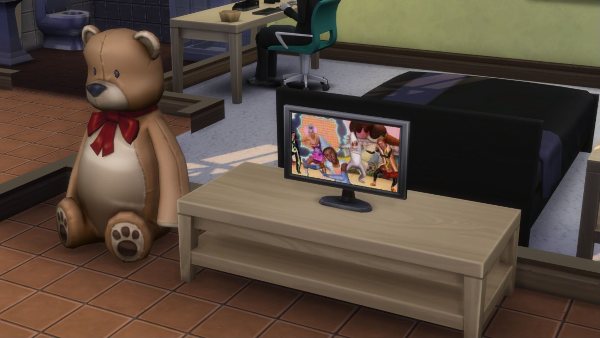 After getting the stuffed animal, players need to put it near a TV. The goal is to have their Sims play with it a lot! Since stuffed animals can be moved around in *The Sims 4*, you can just pick it up and drag it close to the TV while you’re playing.