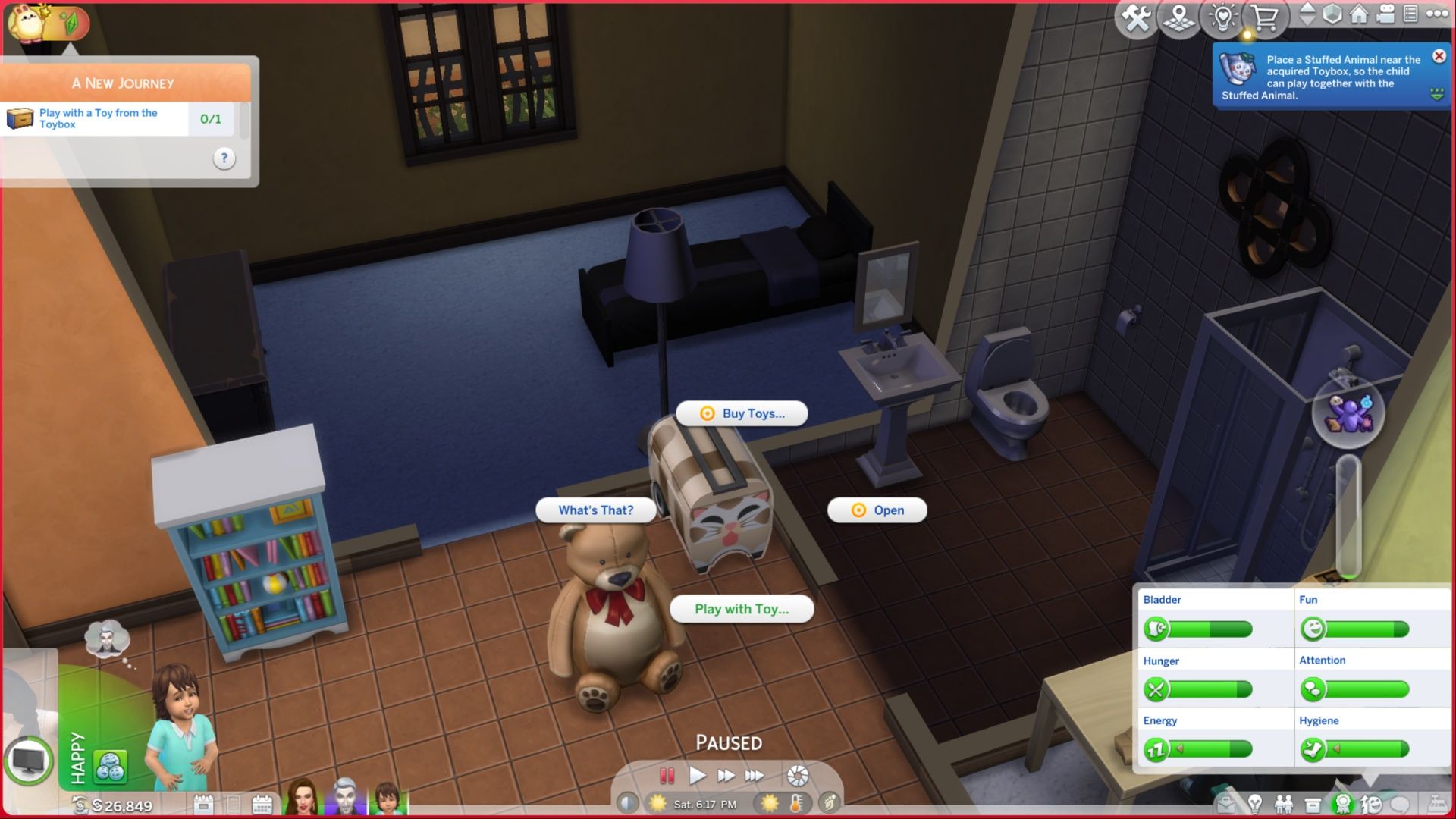 To finish the final “A New Journey” Quest, players need to have their Sim sleep or take a nap on the bed while the stuffed animal is close by.
