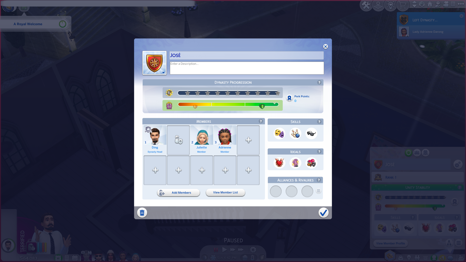 Dynasties define what’s important to them by choosing skills and ideals for their members to focus on. When members practice these skills and live by these ideals, the dynasty gains Prestige.