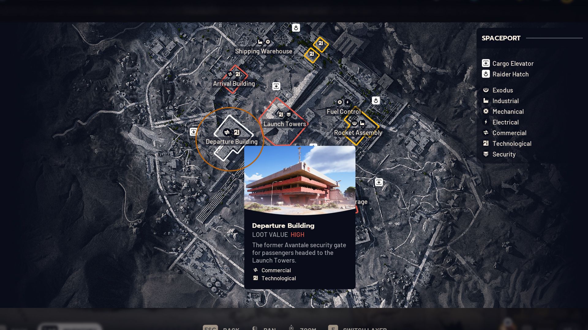Start by selecting the Spaceport map. Head to the Departure Building, which is on the west side. You’ll find it to the left of the Launch Towers and underneath the Arrival Building. This building is known for having good loot, so it should be easy to locate.