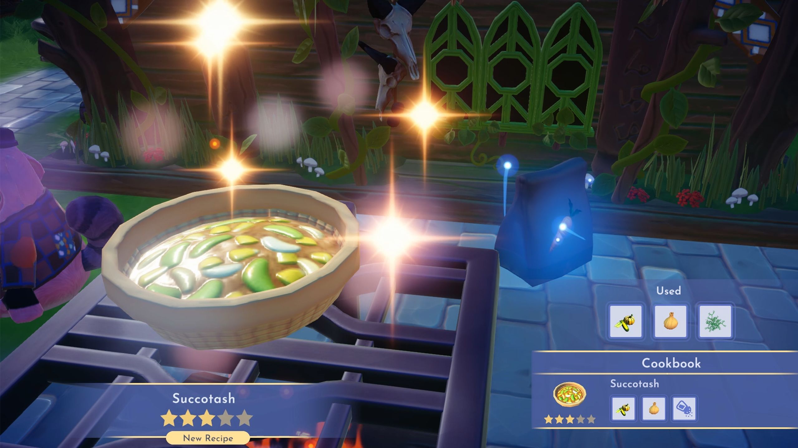 Once you’ve gathered all three seeds, plant them anywhere in the valley and give them five minutes to grow. If you’d rather not wait, you can use a crop-growing elixir to make them grow instantly. To make Succotash, combine the three sisters, onions, and any spice you like. Then, give the Succotash to Pocahontas and set up the picnic in the valley to take a picture. This will finish the Three Sisters Garden quest in DDV.