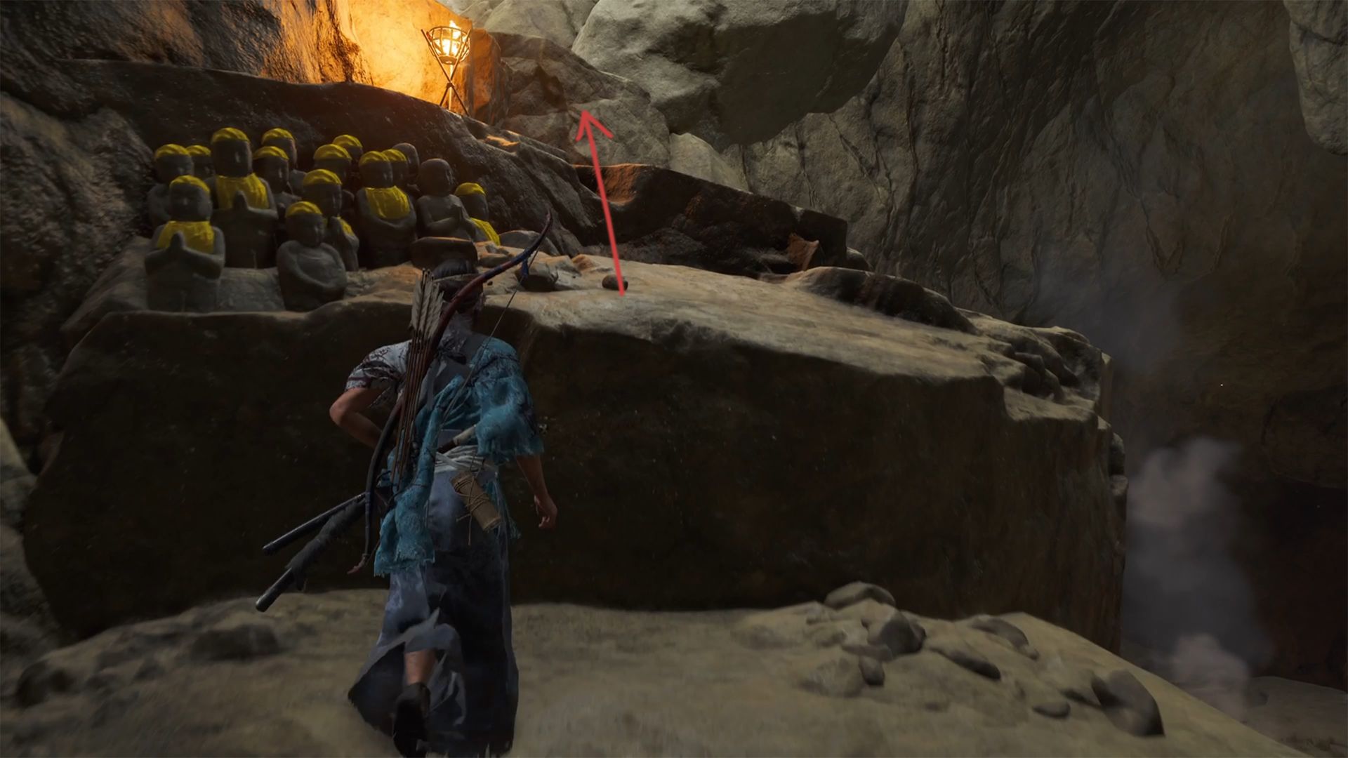 There’s a path leading upwards; following it will bring Atsu to an altar. Be sure to visit the altar before continuing deeper inside.