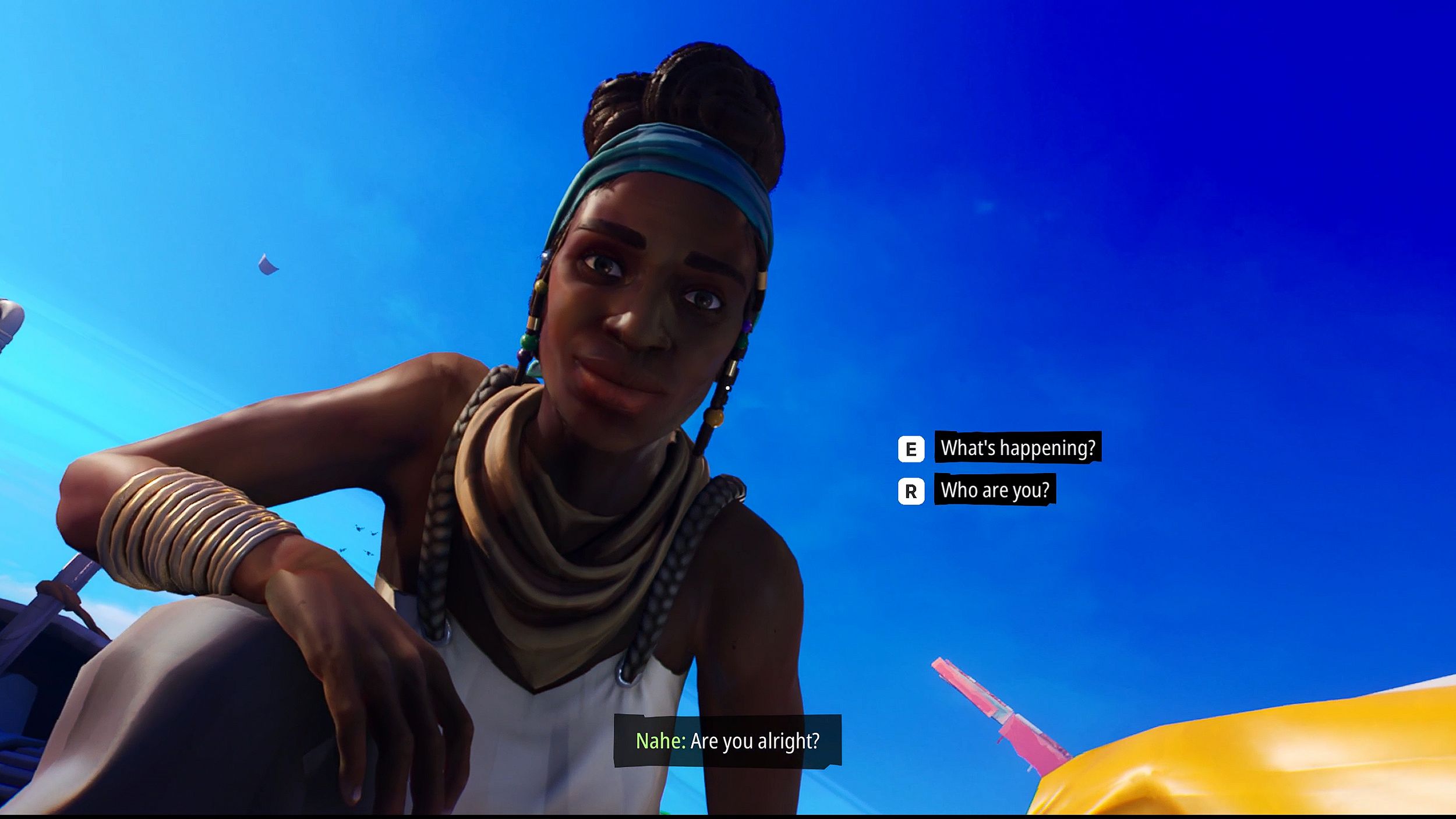 Drifting in the ocean, I heard a voice tell me it was time to reach out to someone. I saw a shimmering figure, AJC, heading for the surface, and I followed. It was a difficult journey, and I lost some energy, but I finally reached the surface and was rescued by Nahe. Nahe would become my guide, teaching me how to survive in the world of Tides of Tomorrow.