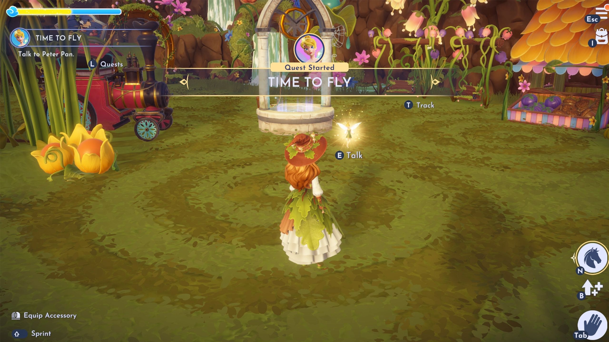 Have a final conversation with Tinker Bell to finish the Time To Fly quest and receive the Pixie Engineer Outfit as a reward.