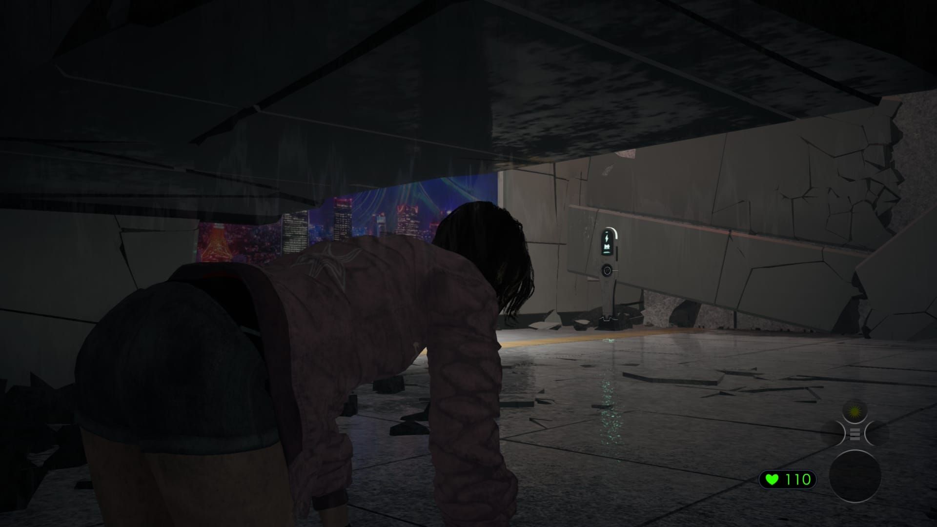 The second level is full of action, but don’t forget to check the ground floor! That’s where you’ll find both Charging Stations in Episode 3 of Tokyo Scramble. The Charging Station on the right is easy to reach – it’s directly behind the wall with the alarm.