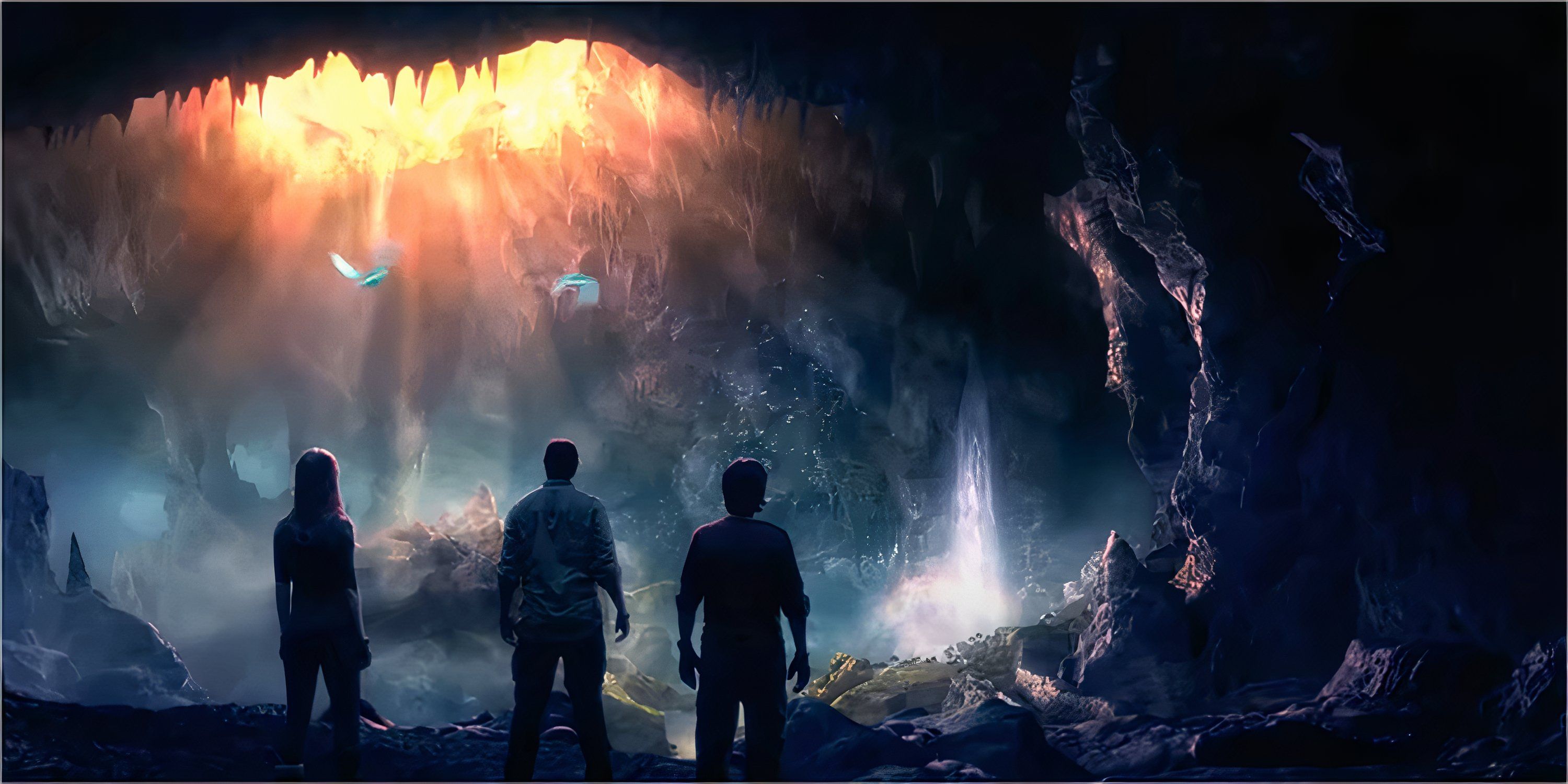 Initiating our lineup is a movie that embraced the 3-D trend of the late 2000s extensively – the film being “Journey to the Center of the Earth“. This production maintains a simple and lighthearted tone. The characters, including Brendan Fraser as Trevor, his nephew, and the daring guide Hannah, pursue clues from Jules Verne’s novel, treating it as a guide to the enigmatic secret world beneath the earth.