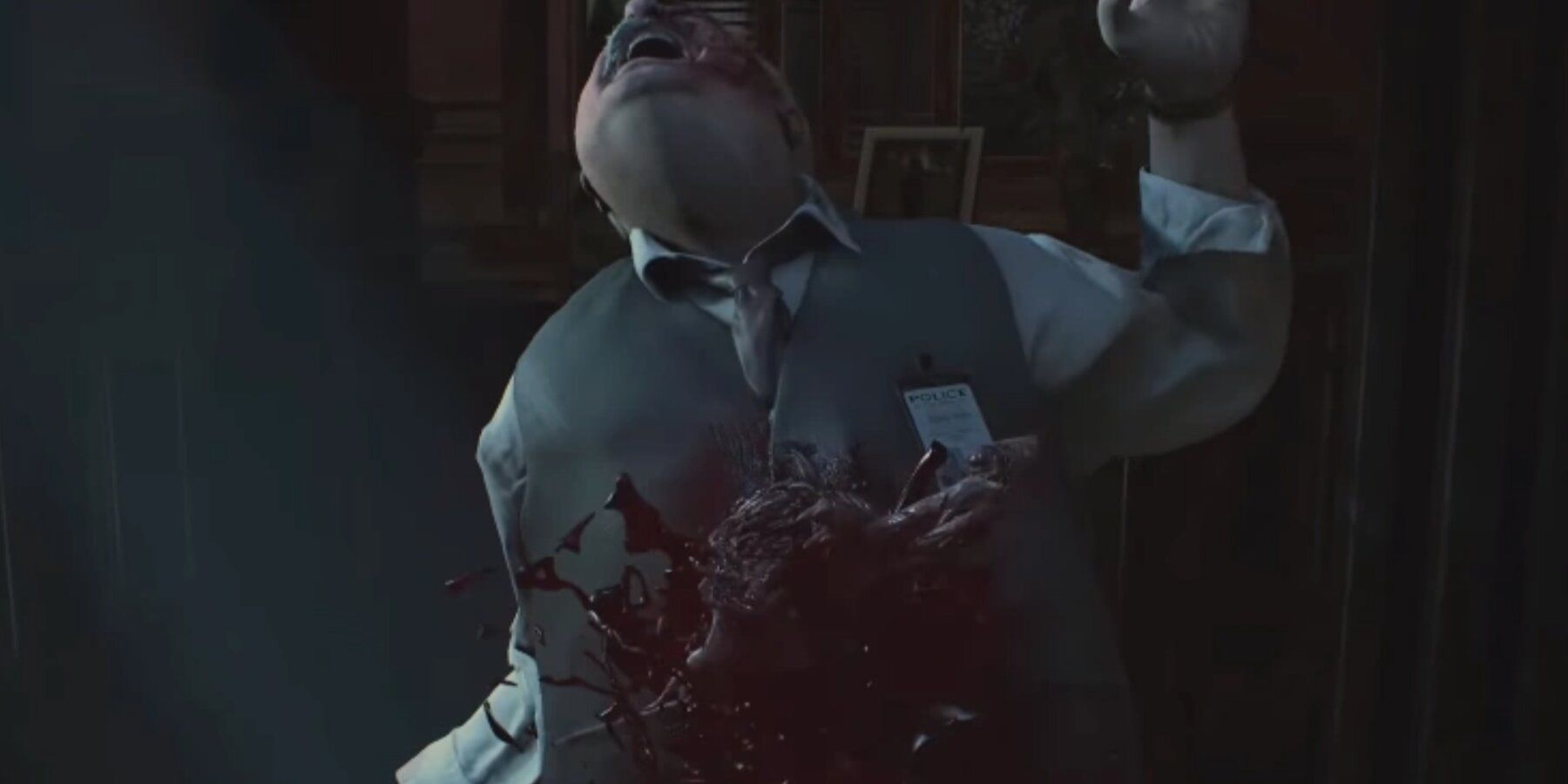 In a desperate last-ditch effort to shirk responsibility for his actions, the character Irons tries to pin the blame on Claire. However, something horrific happens – a monster born from William Birkin erupts from his chest, effectively ending his life. This grisly demise was likely intended as a form of humiliation for Irons by Capcom, serving more as a spectacle of Birkin’s abilities than a fitting end for such a character.