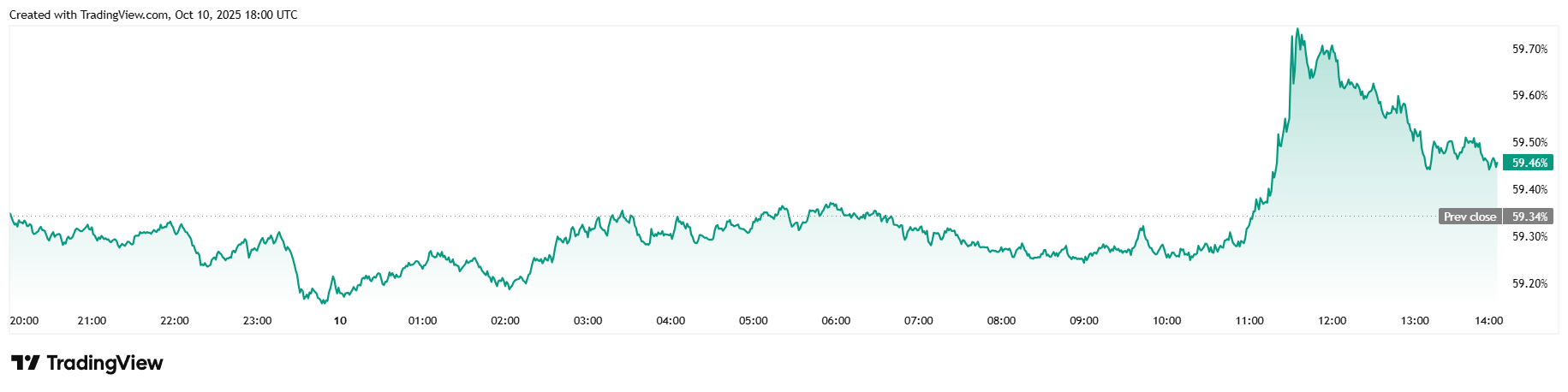 Twenty-four-hour trading volume rose 6.48% to $77.09 billion, while market capitalization fell 2% to $2.35 trillion. Bitcoin dominance, however, climbed 0.17% to 59.46%, a small victory in a sea of losses. 🏆📊