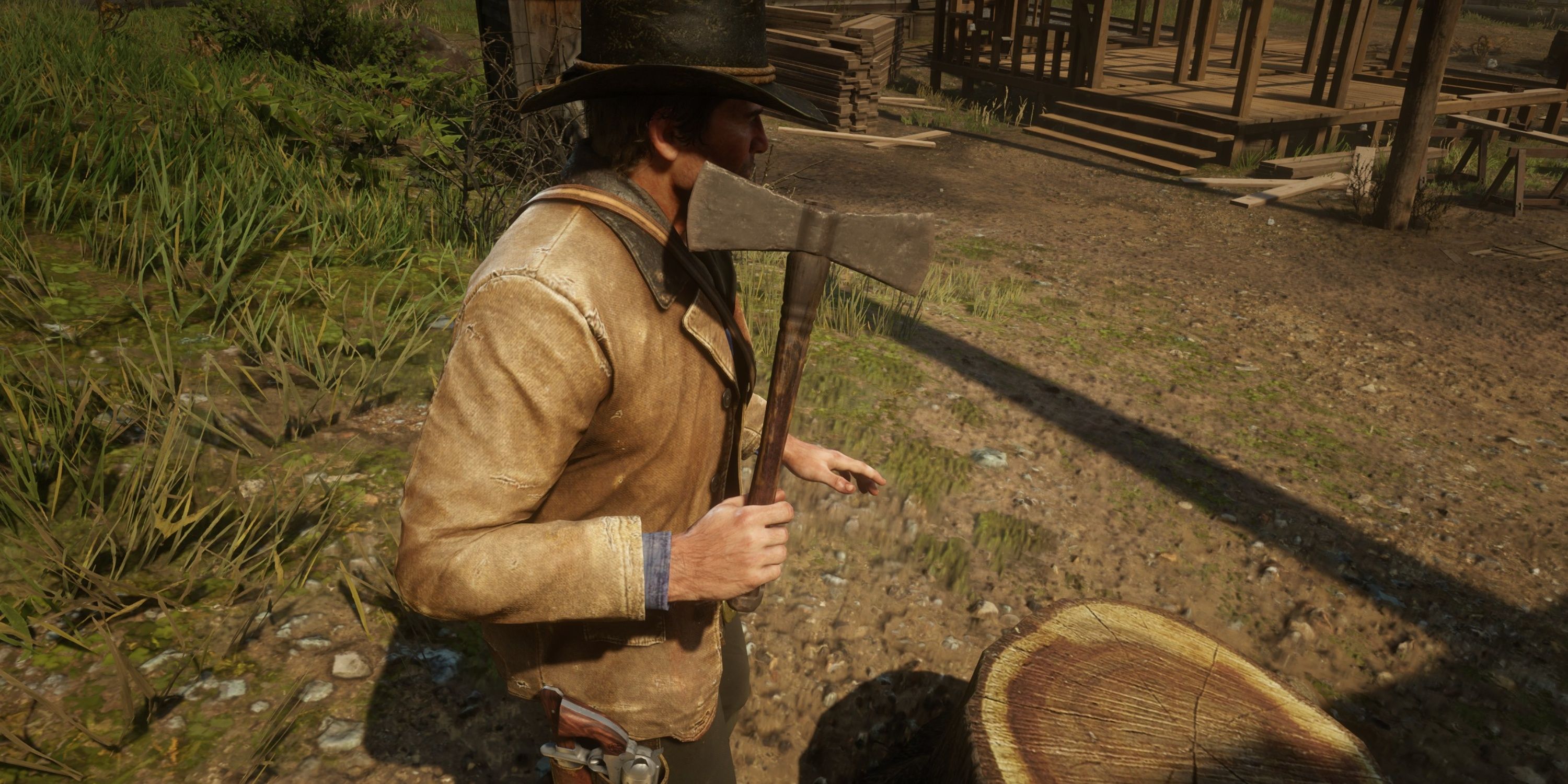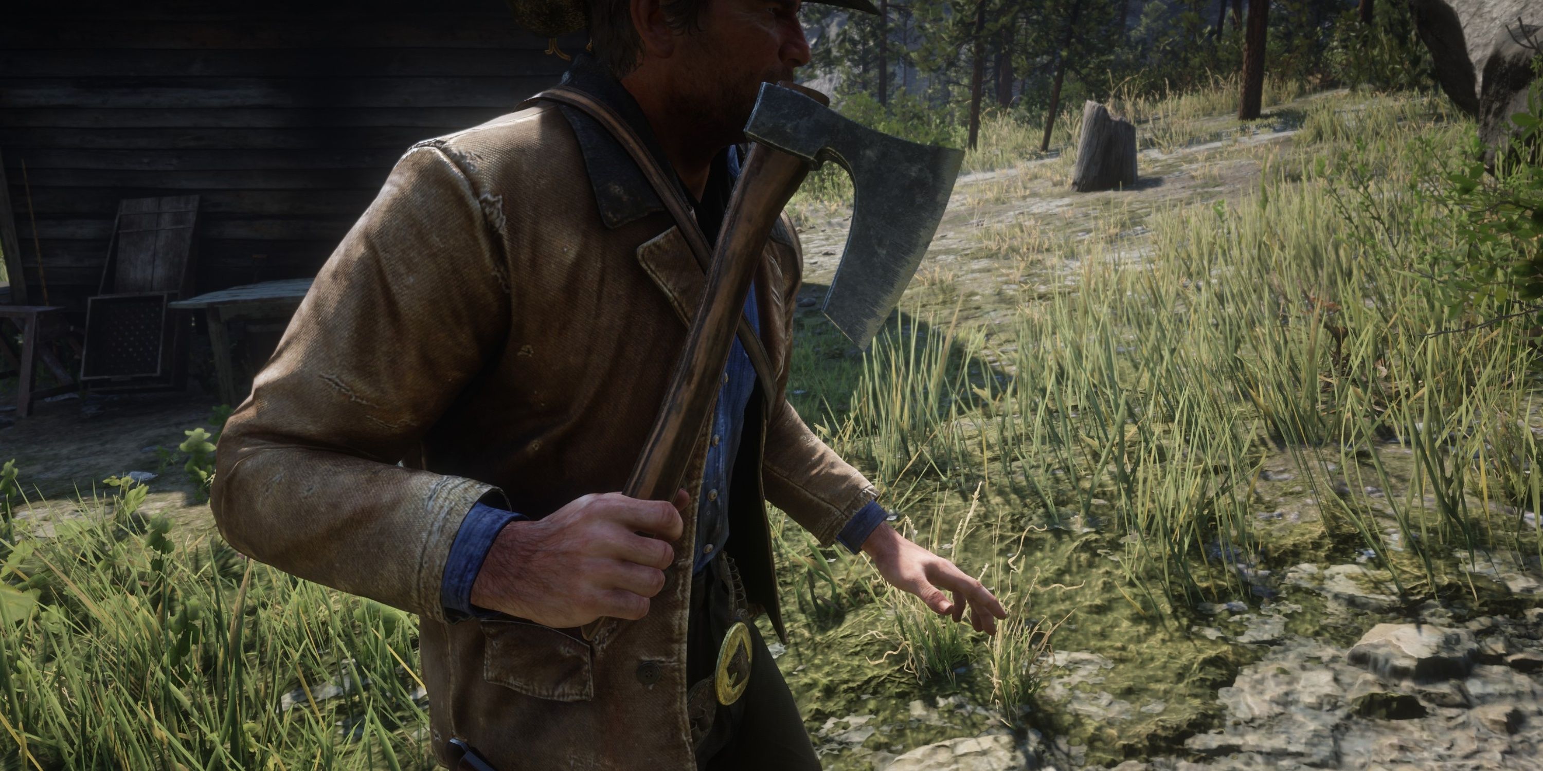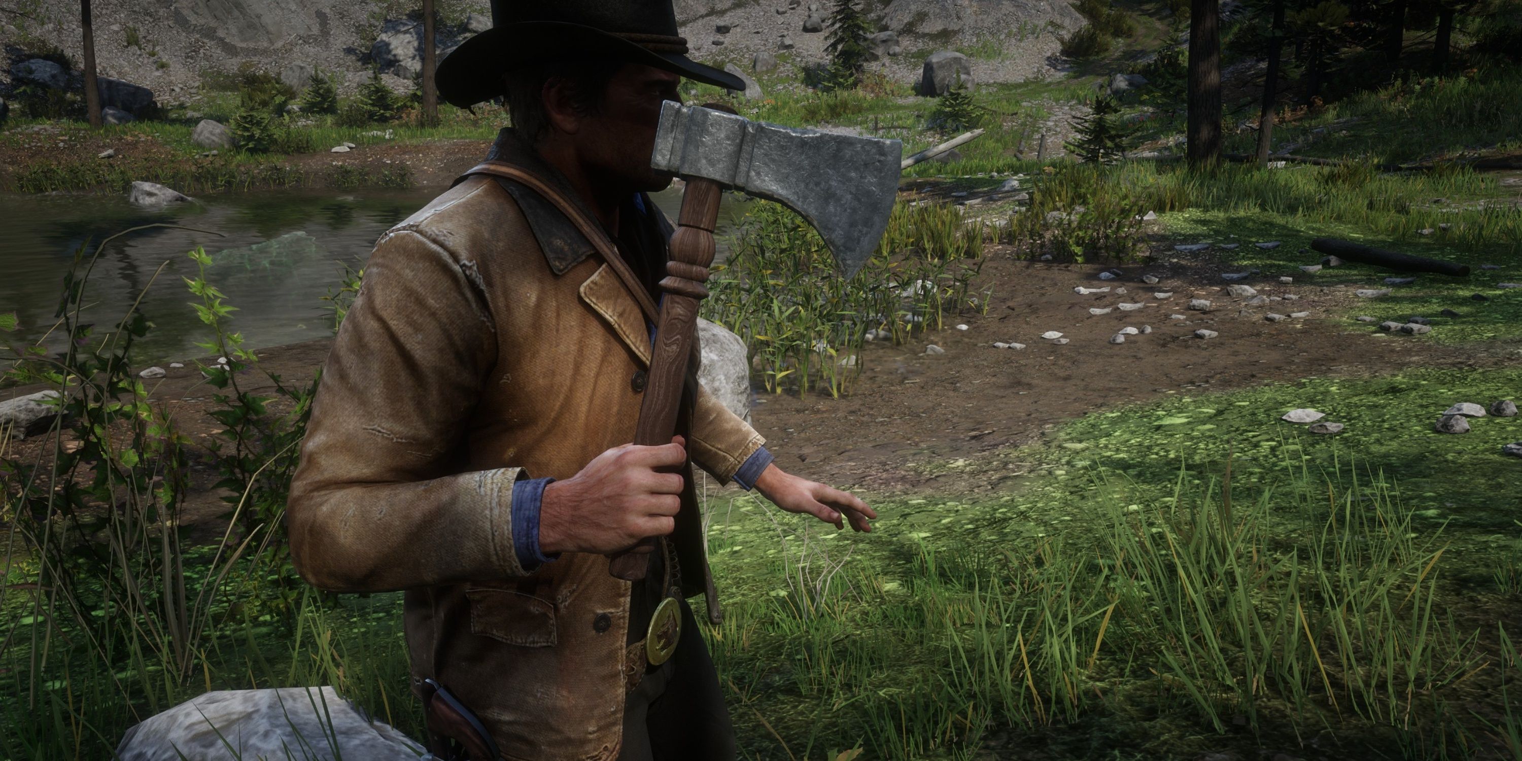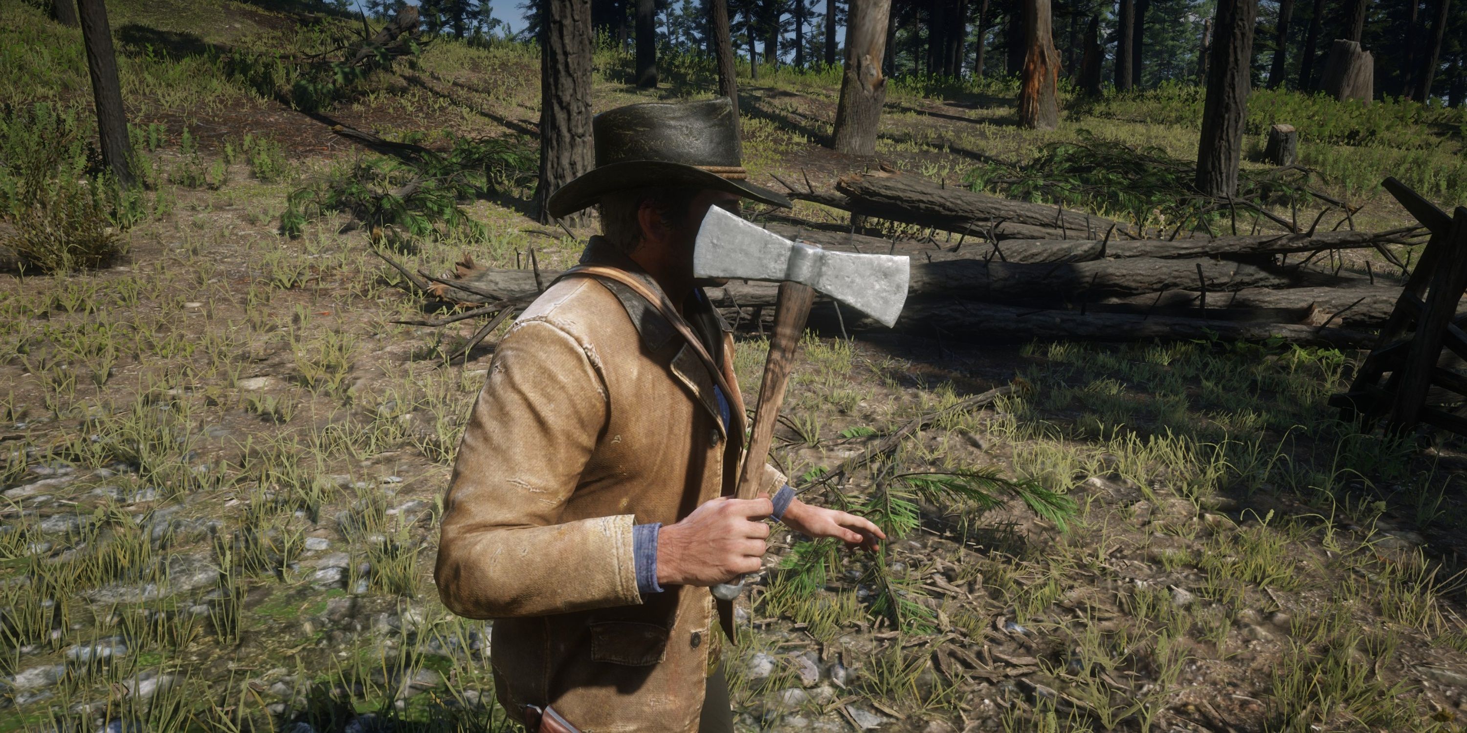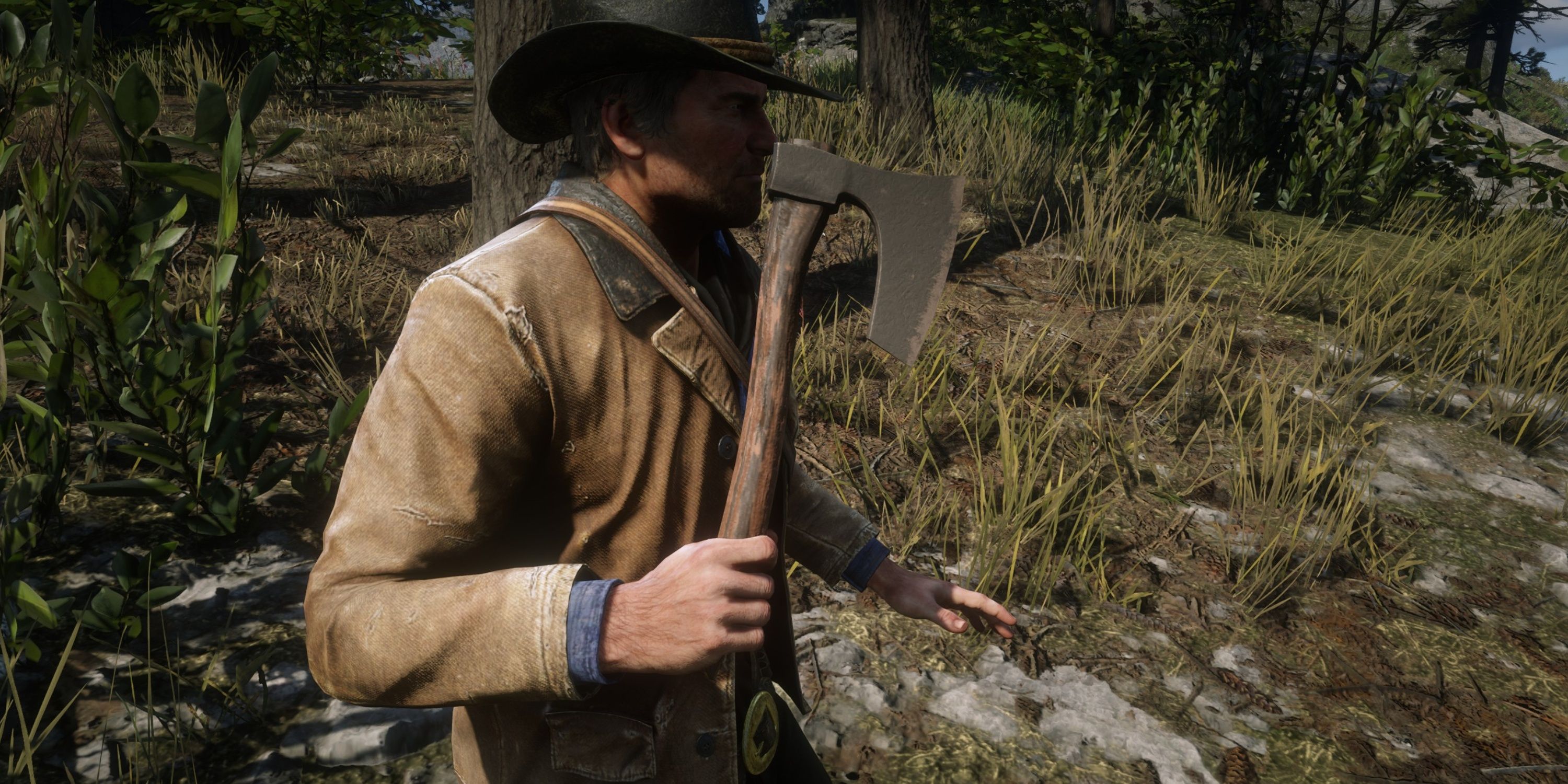 For individuals constructing a cabin in the woods, the Hunter Hatchet proves incredibly useful due to its effectiveness at shaving wood. However, in Arthur’s unique scenario, it serves as an efficient tool for severing throats and generating enough force to cut through bones and even brains. The Hunter Hatchet can be easily located with a brief walk south from Window Rock, resting patiently within a tree stump, waiting to be claimed.