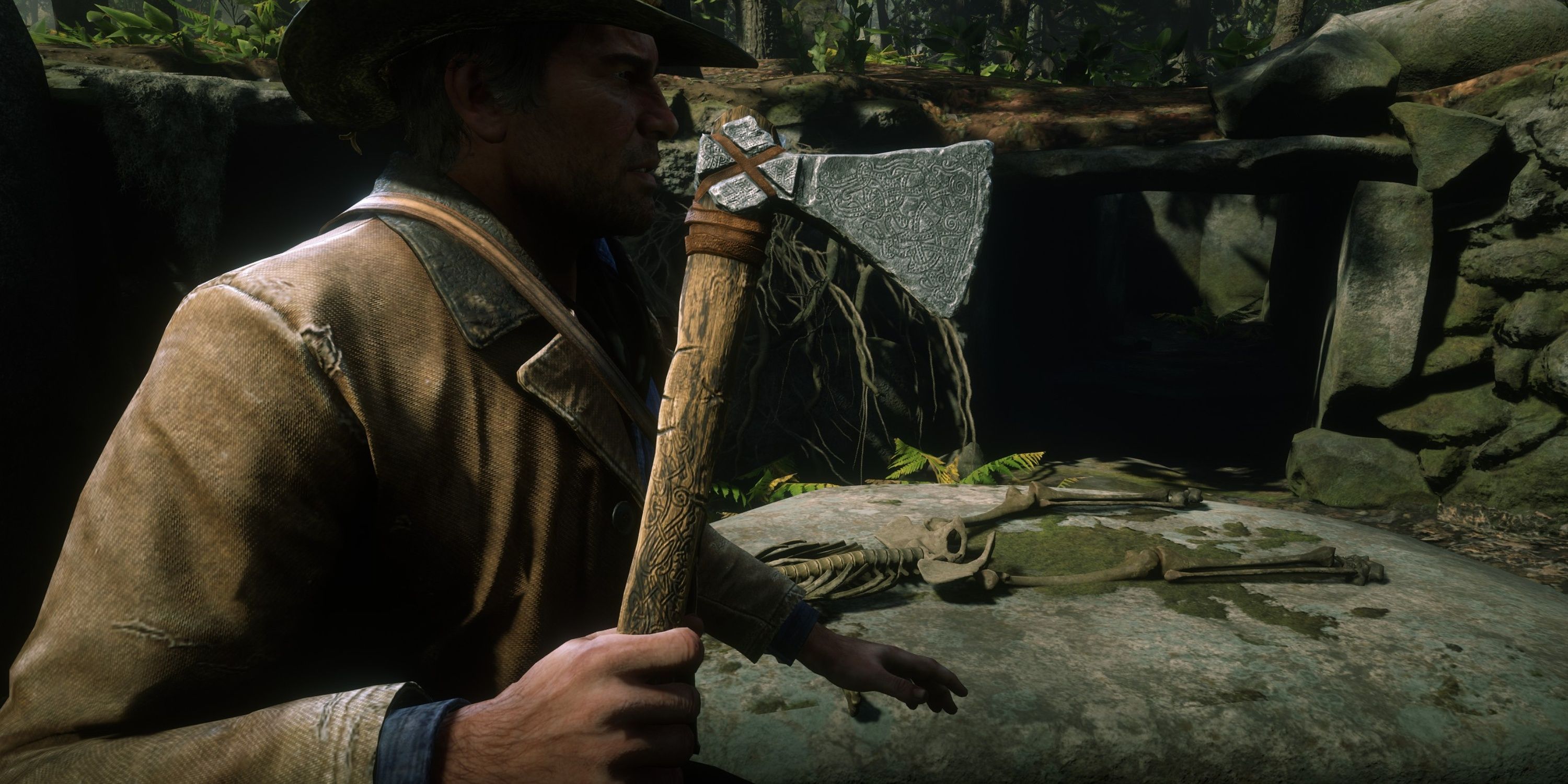 In the world of Red Dead Redemption 2, the Stone Hatchet stands out as one-of-a-kind melee weapon among all others. What makes it so unique is the series of tasks required to obtain it. Initially, players must finish bounty hunter missions in Grand Theft Auto Online, a different game by Rockstar Games. Subsequently, they need to use the Stone Hatchet to slay enemies, and if their Rockstar Account is linked, they can discover this artifact at a Native Burial Site. It’s an ancient relic lacking any special abilities.