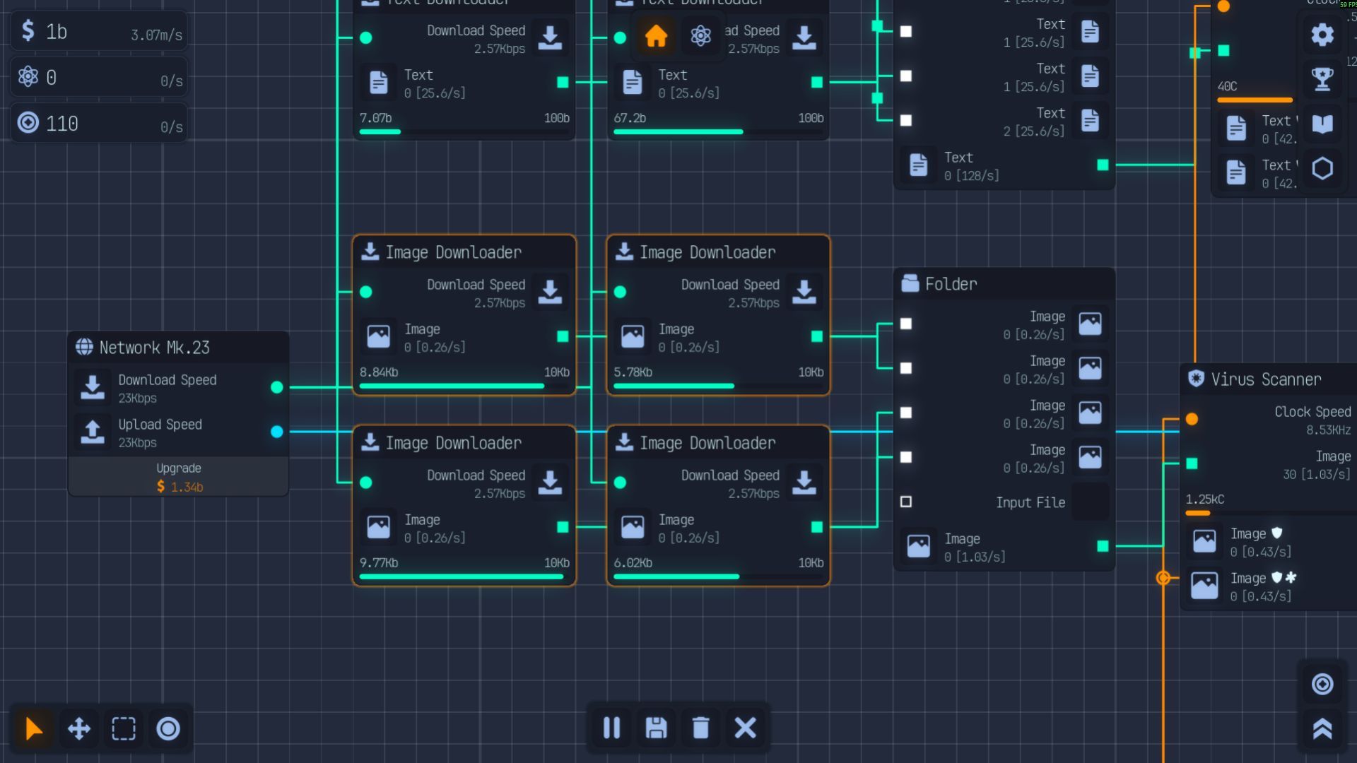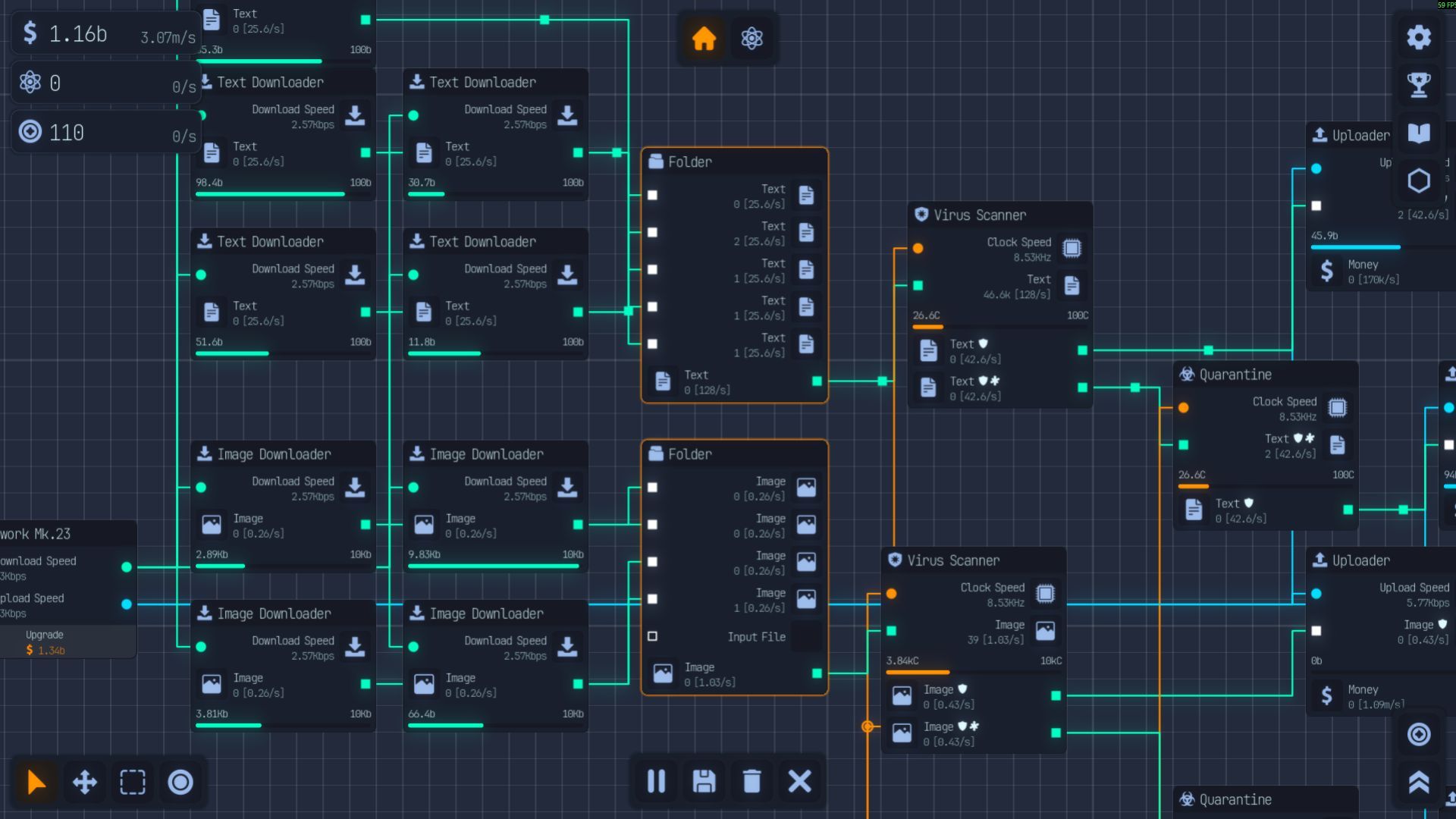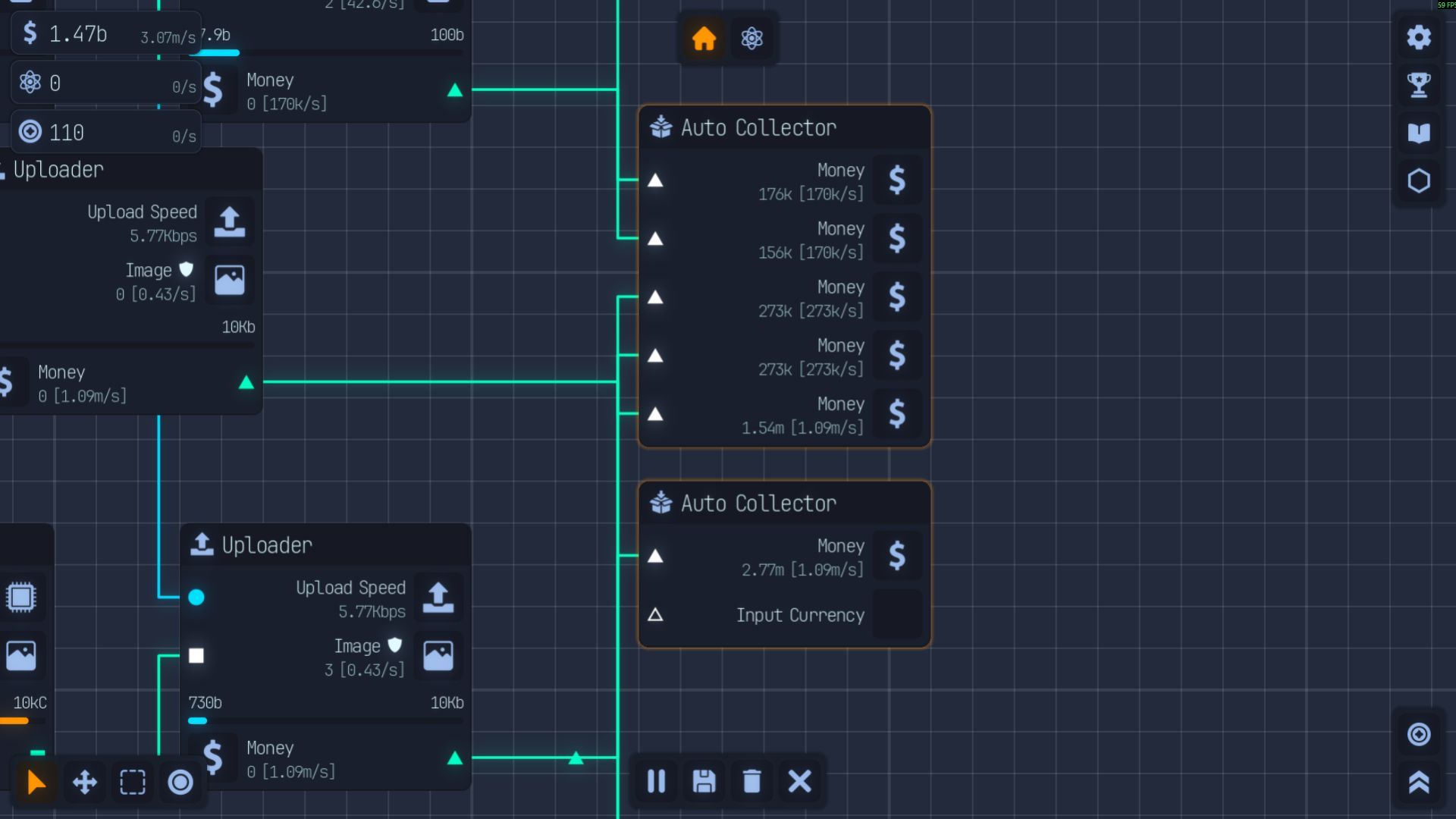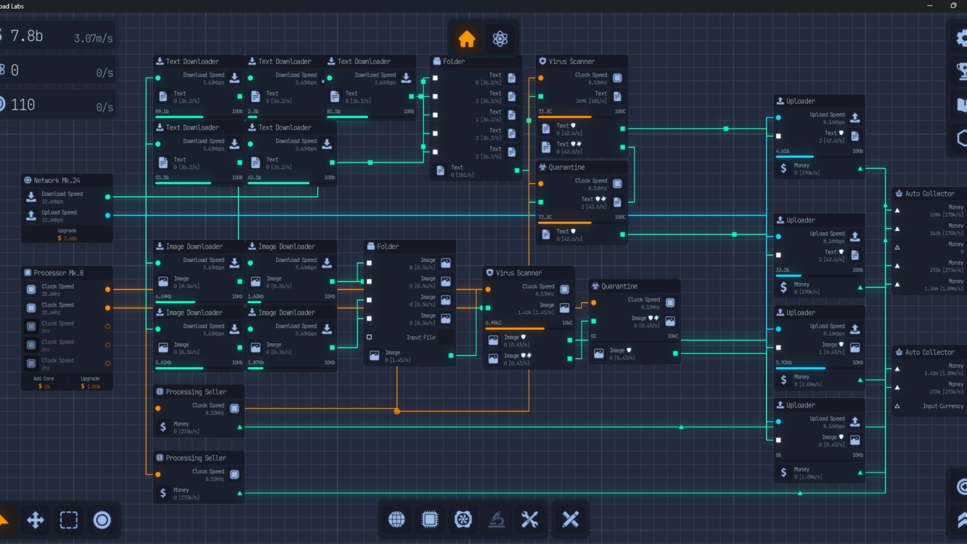 Just like a tidy setup is key for building a PC, it’s also important in Upload Labs. As your system gets bigger, keeping things neat and well-organized becomes crucial. A great way to do this is by using the game’s grid system. Try arranging your nodes in squares or straight lines that make sense – for example, put downloaders on one side, processors in the middle, and uploaders on the other.