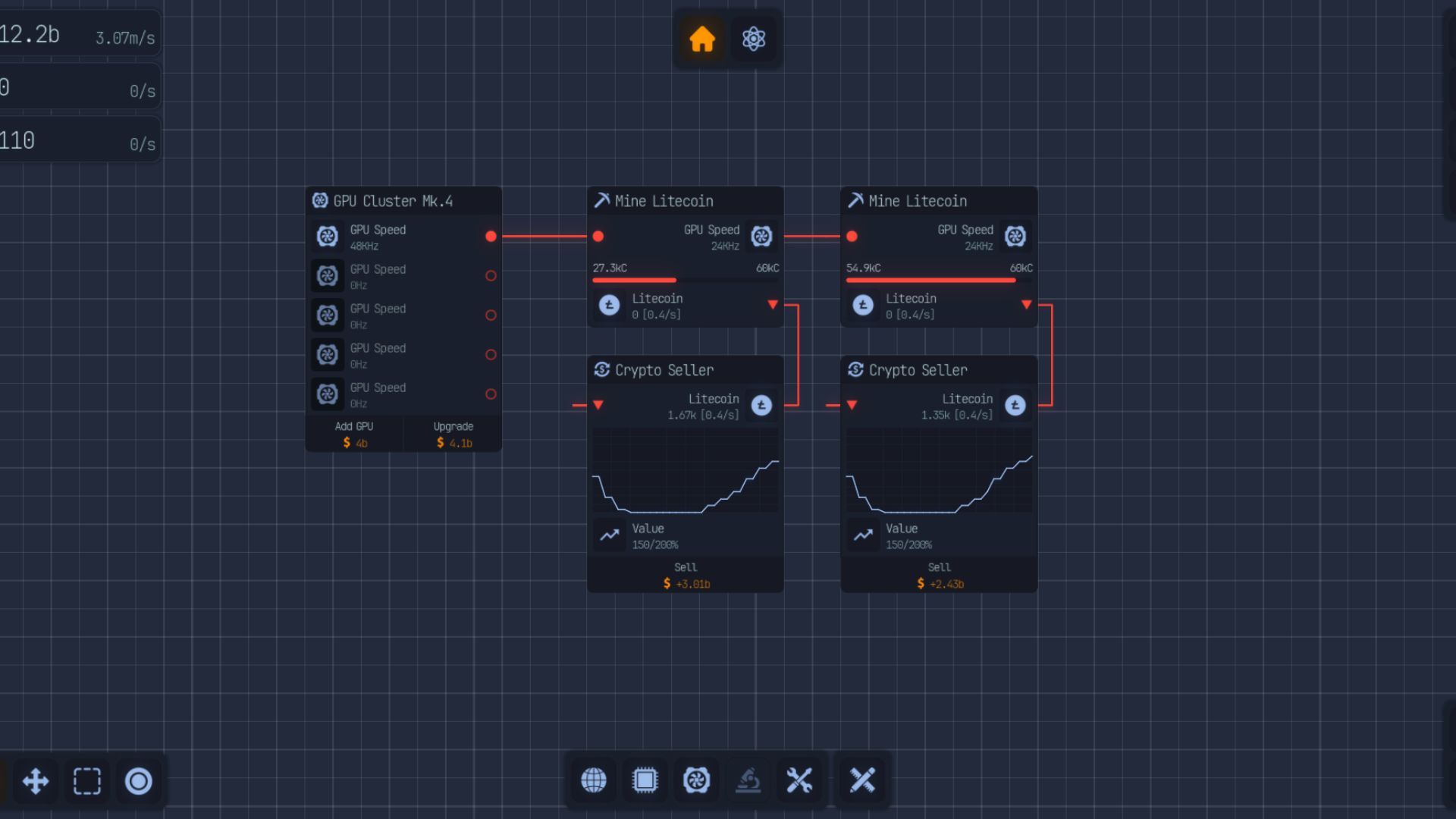 In Upload Labs, your computer’s graphics card (GPU) is used for crypto mining. While it may start as a minor feature, careful management can turn it into a consistent source of income. Once your GPU is running, connect it to the Crypto Seller node to automatically convert your mined LiteCoin into cash. To maximize earnings, regularly upgrade your GPU – newer, more powerful GPUs mine faster and generate more profit over time.