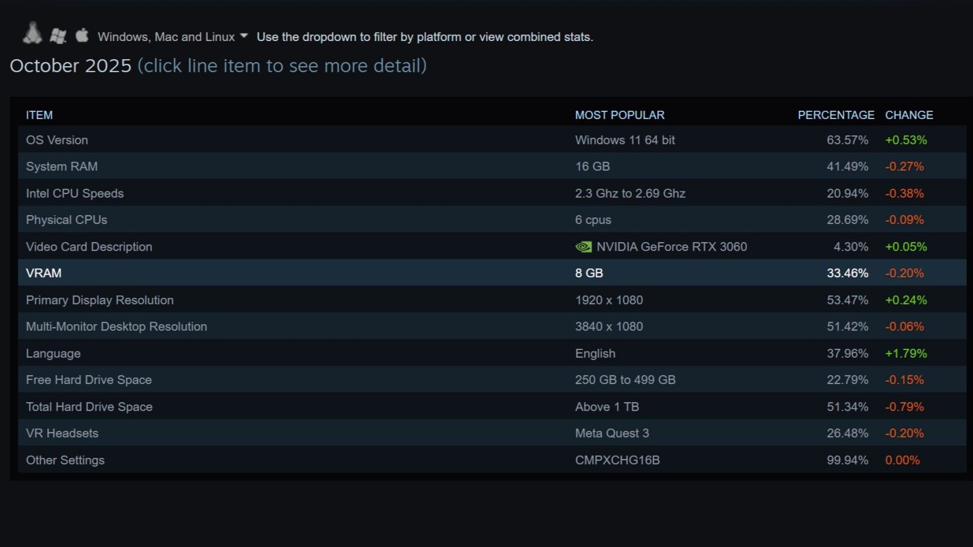So, Valve is planning a new Steam Machine for 2026, and they’re saying it’ll be way more powerful than the Steam Deck – like six times the power! But according to a Valve engineer, Yazan Aldehayyat, it’s not about being the most powerful system out there. They’re aiming for something that gives a solid upgrade to most of us Steam players. Basically, they looked at what specs most people are actually using, based on their monthly hardware surveys. According to their data from October 2025, the average Steam user has a PC running Windows 11 with a six-core Intel CPU, an Nvidia GeForce RTX 3060 with 8GB of VRAM, and 16GB of RAM. They’re building the new Steam Machine to be at least as good as, or even better than, that setup – targeting around 70% of their user base. It sounds like they’re focusing on a great experience for the majority, rather than chasing the highest-end specs.