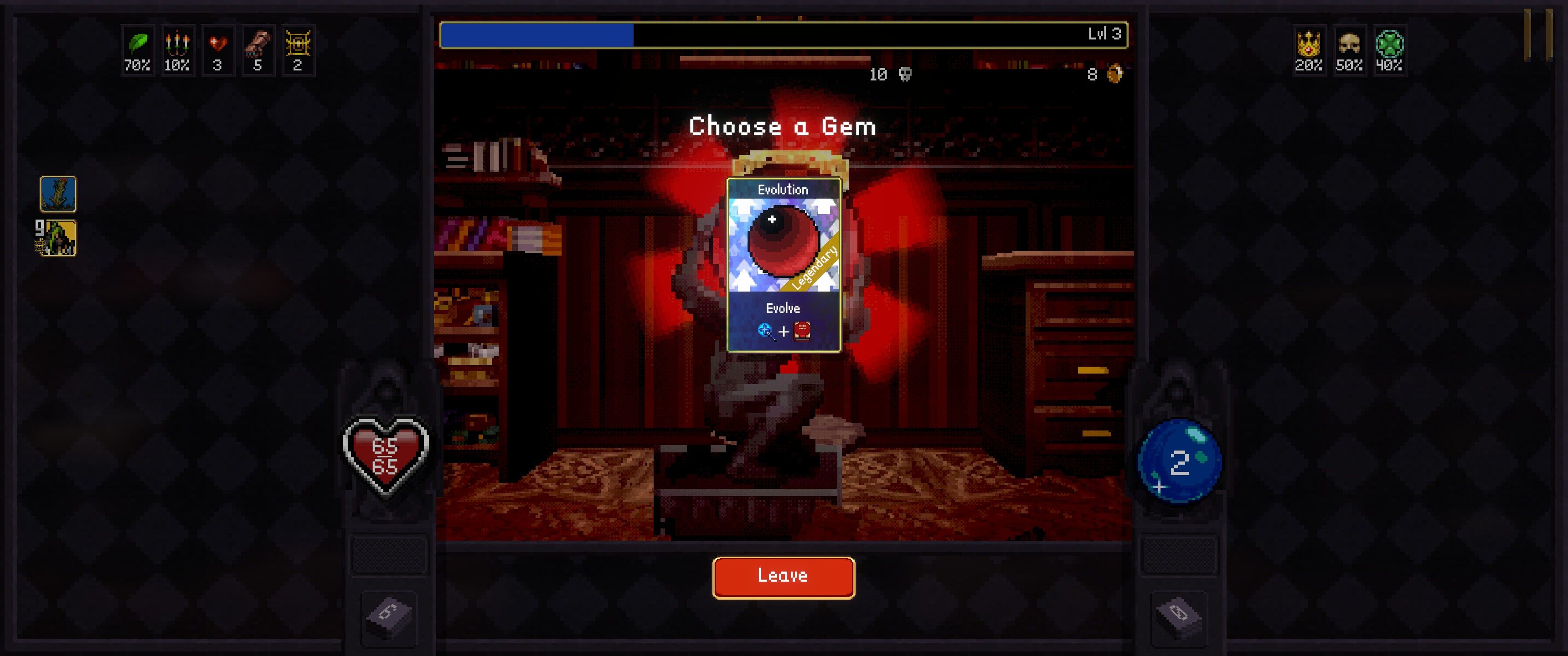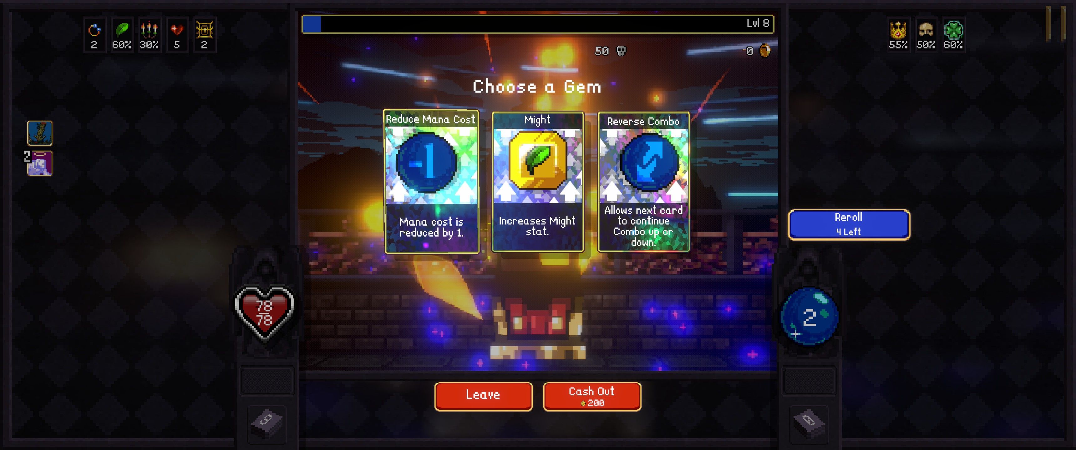 Throughout the game, players will find 15 Relics, each one introducing a significant new gameplay feature. The first Relic is available in the tutorial and unlocks the Combo Stack mechanic, which is a core element of Vampire Crawlers. This means playing cards in order of increasing mana cost builds a damage multiplier, allowing for surprisingly high damage early on. As players progress, they’ll unlock even more helpful features, like access to powerful Arcana cards and a convenient button to instantly clear the first floor of any dungeon they’ve already beaten, all while still earning experience.