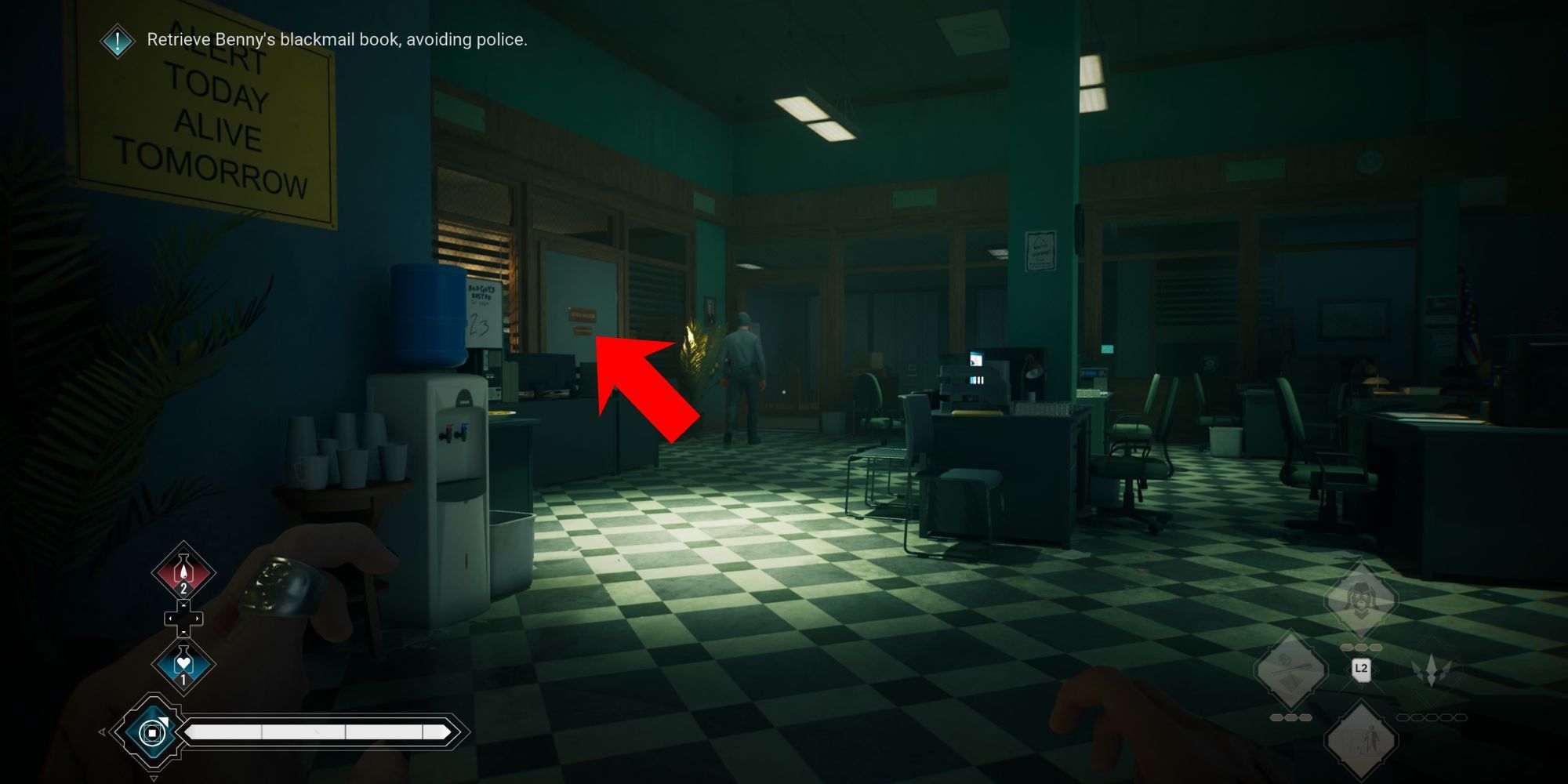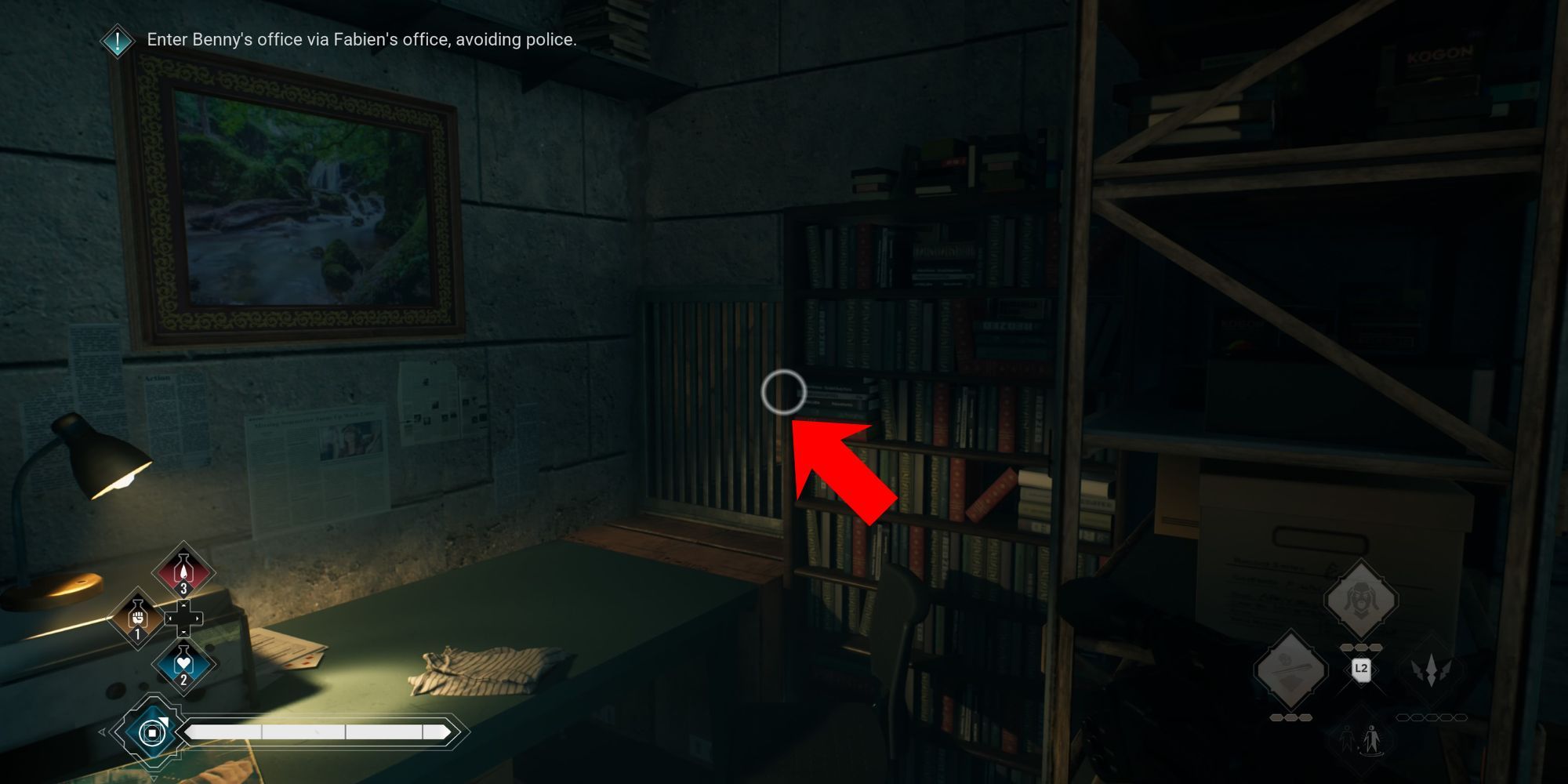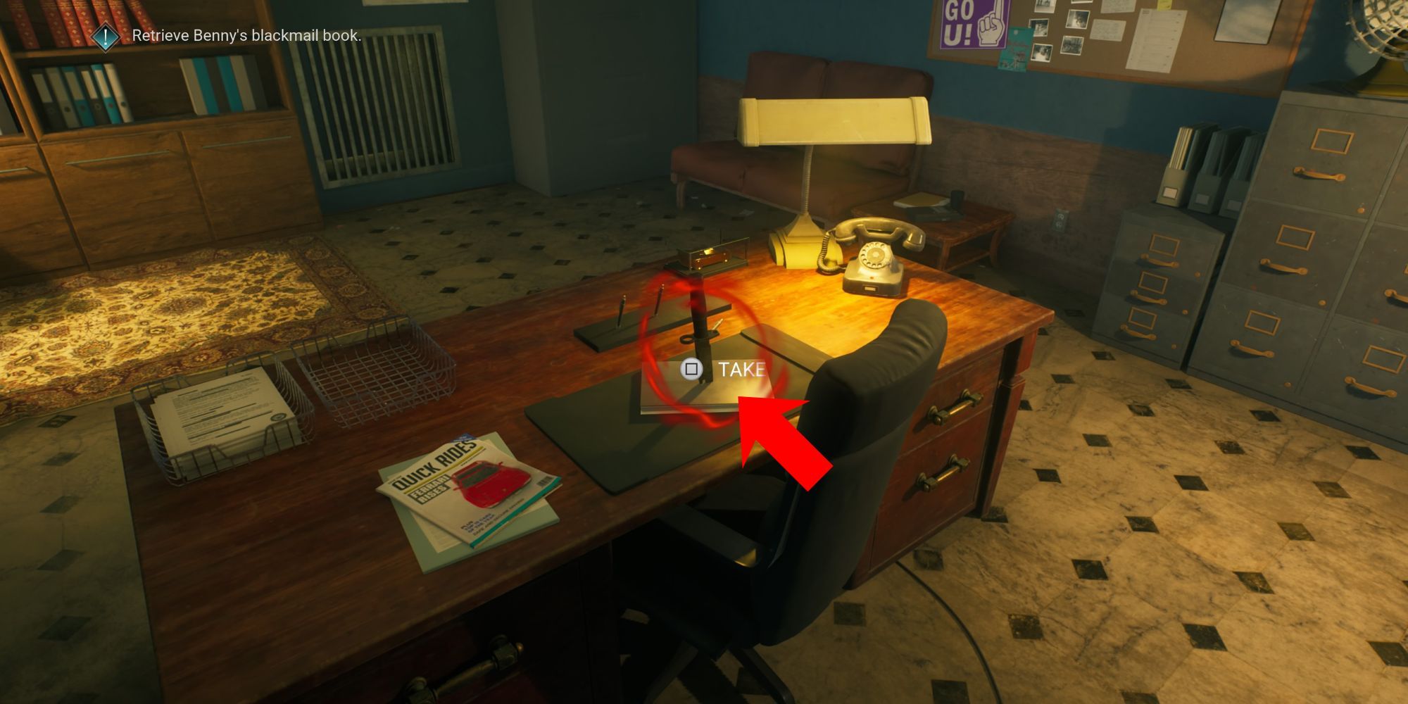 Now that you have the key, go to Fabien’s office. Use the air vent in the corner to crawl through the police station until you reach Benny’s office. Inside, you’ll find the blackmail book on the desk – it’s next to a knife.