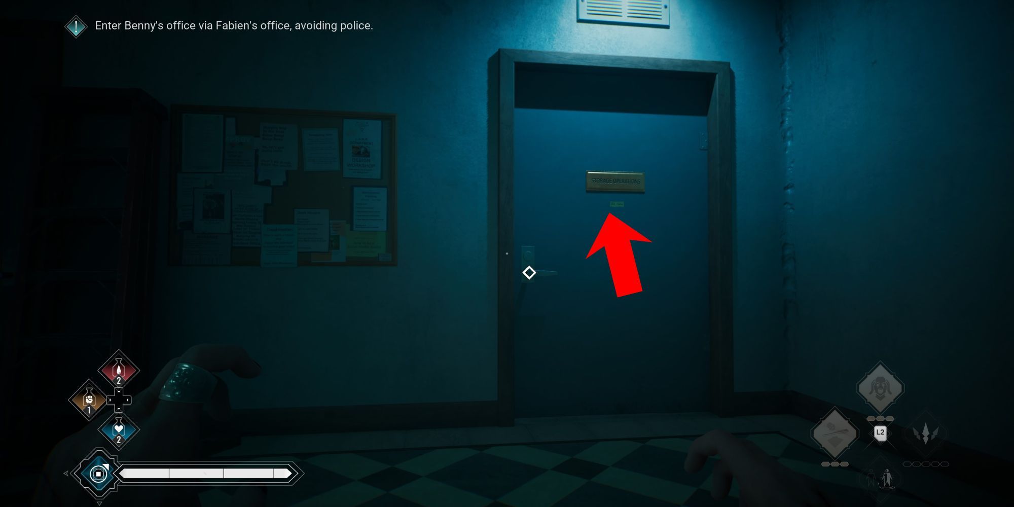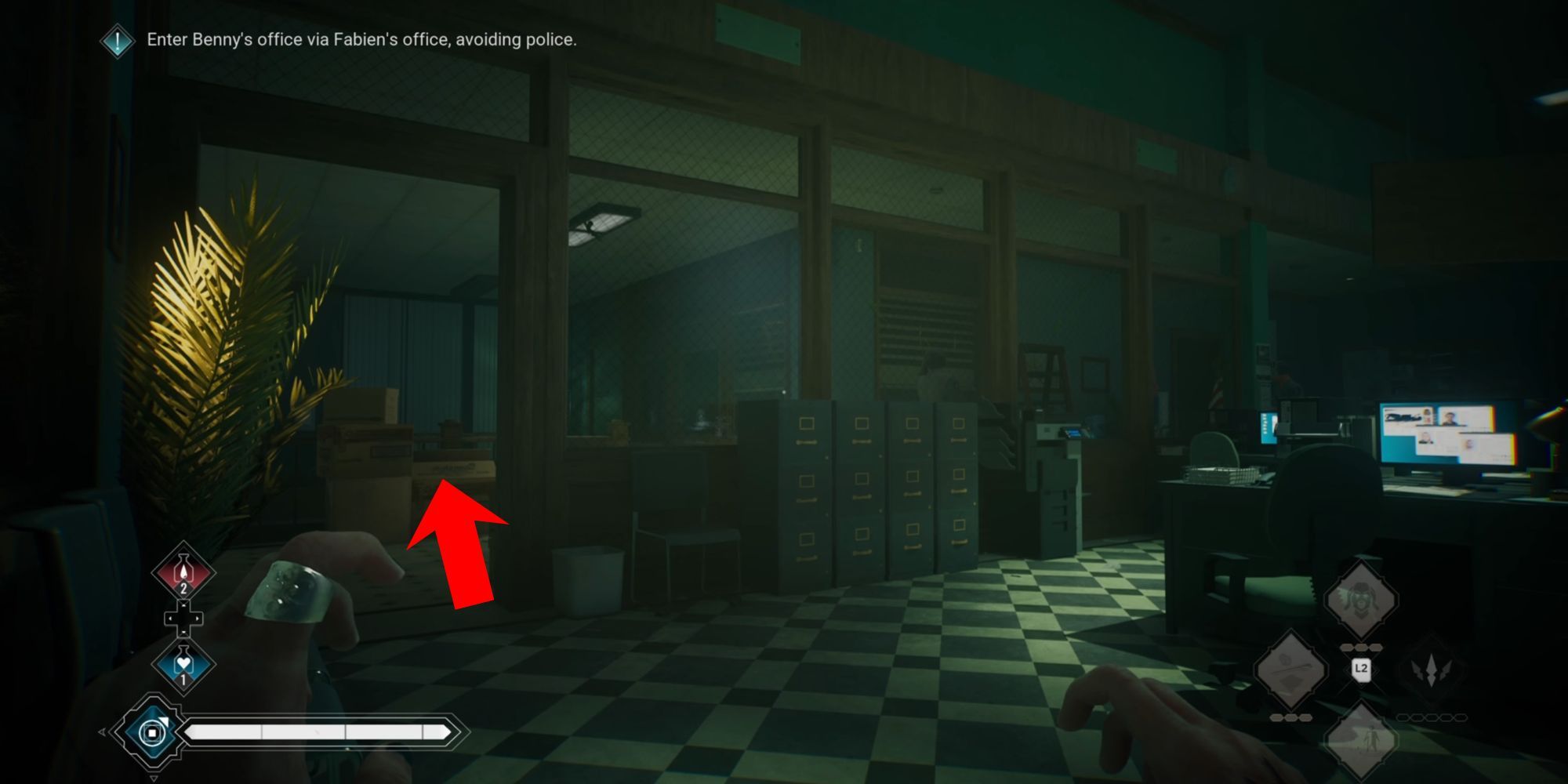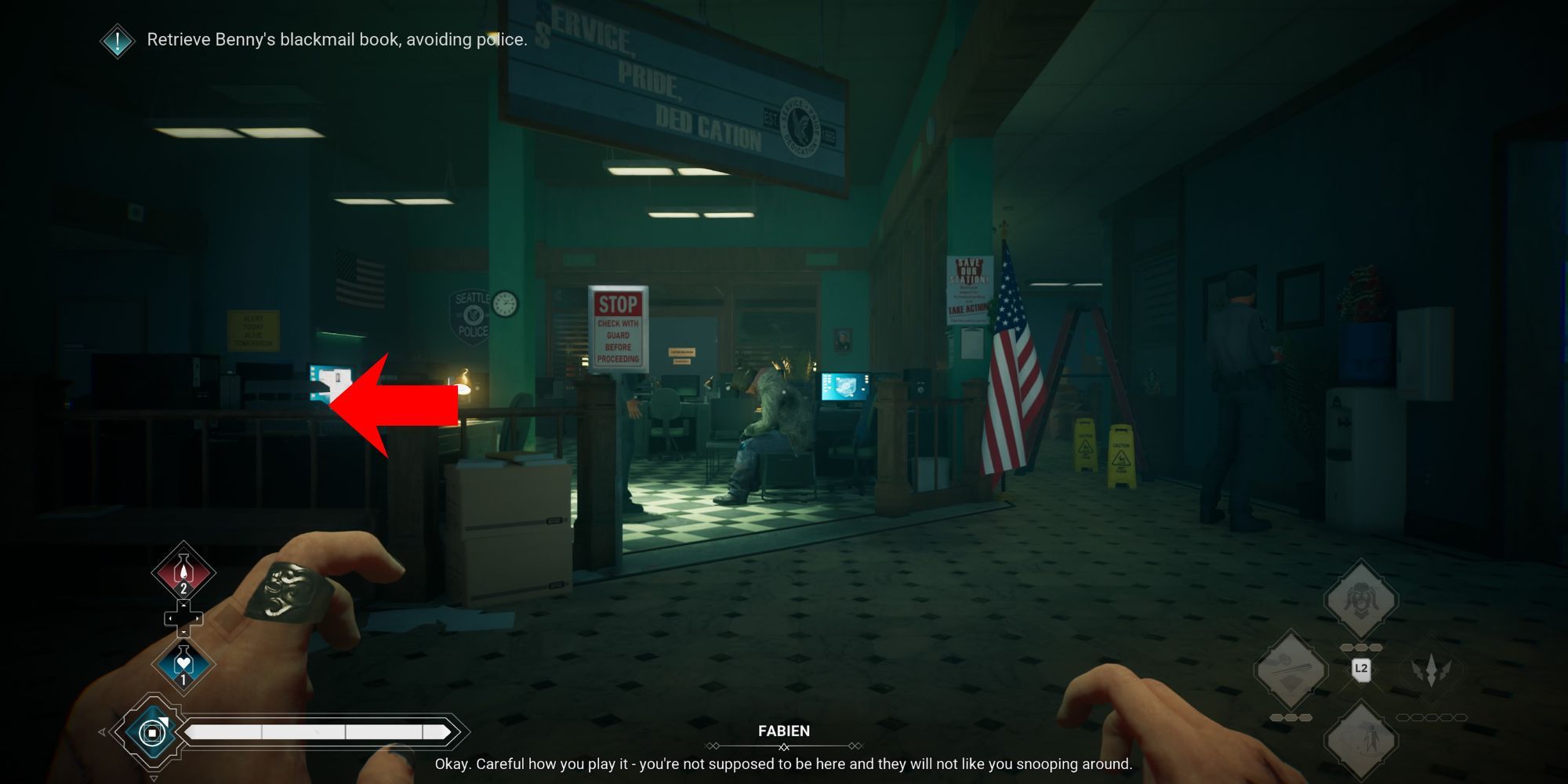 Now that you have the key, go to Fabien’s office. Use the air vent in the corner to crawl through the police station until you reach Benny’s office. Inside, you’ll find the blackmail book on the desk – it’s next to a knife.