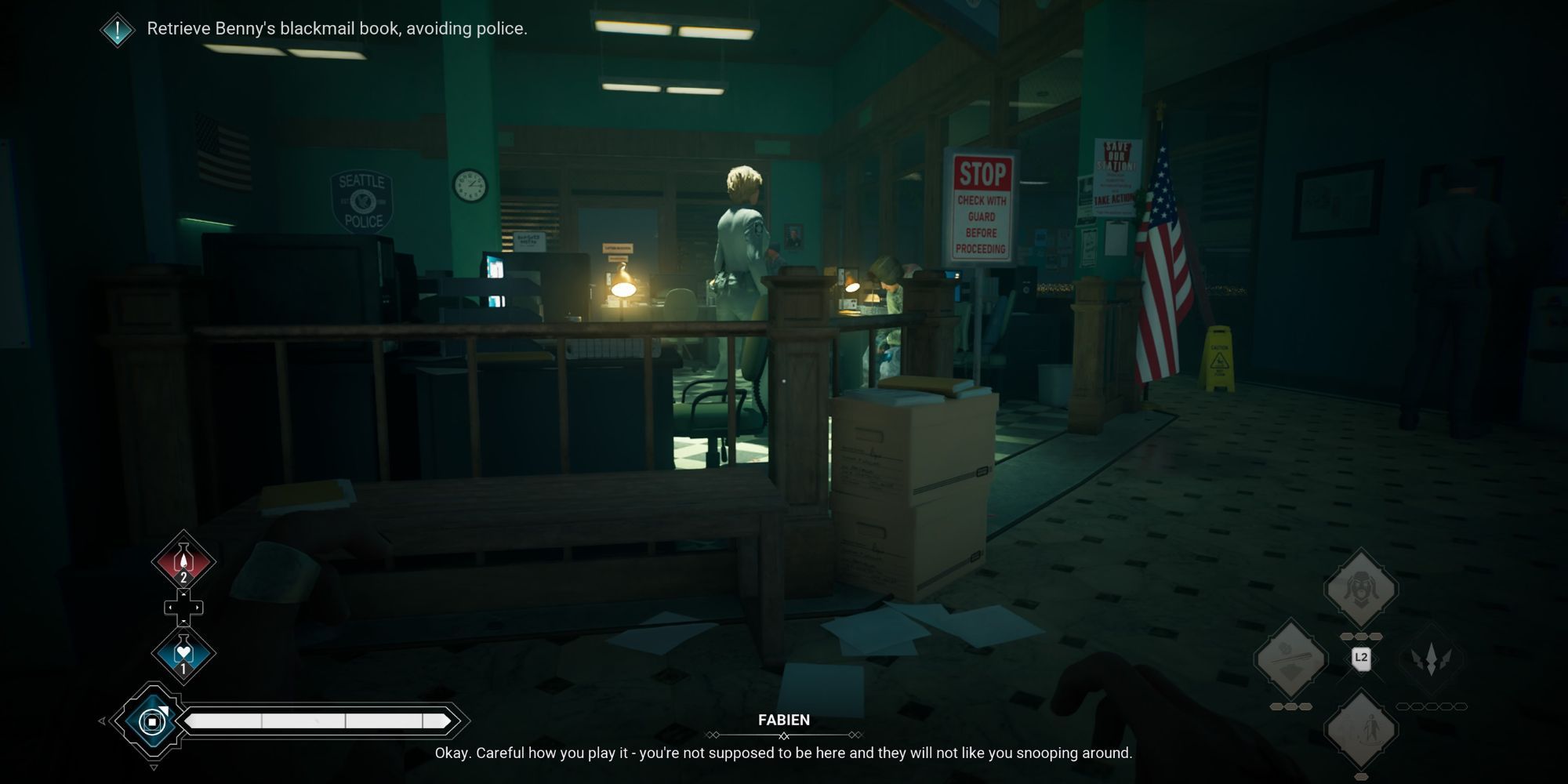 As part of a covert operation, you’ll need to sneak into the police station and retrieve Benny’s blackmail book. It’s crucial to avoid detection by the police – being caught would expose the secrets you’re trying to protect.