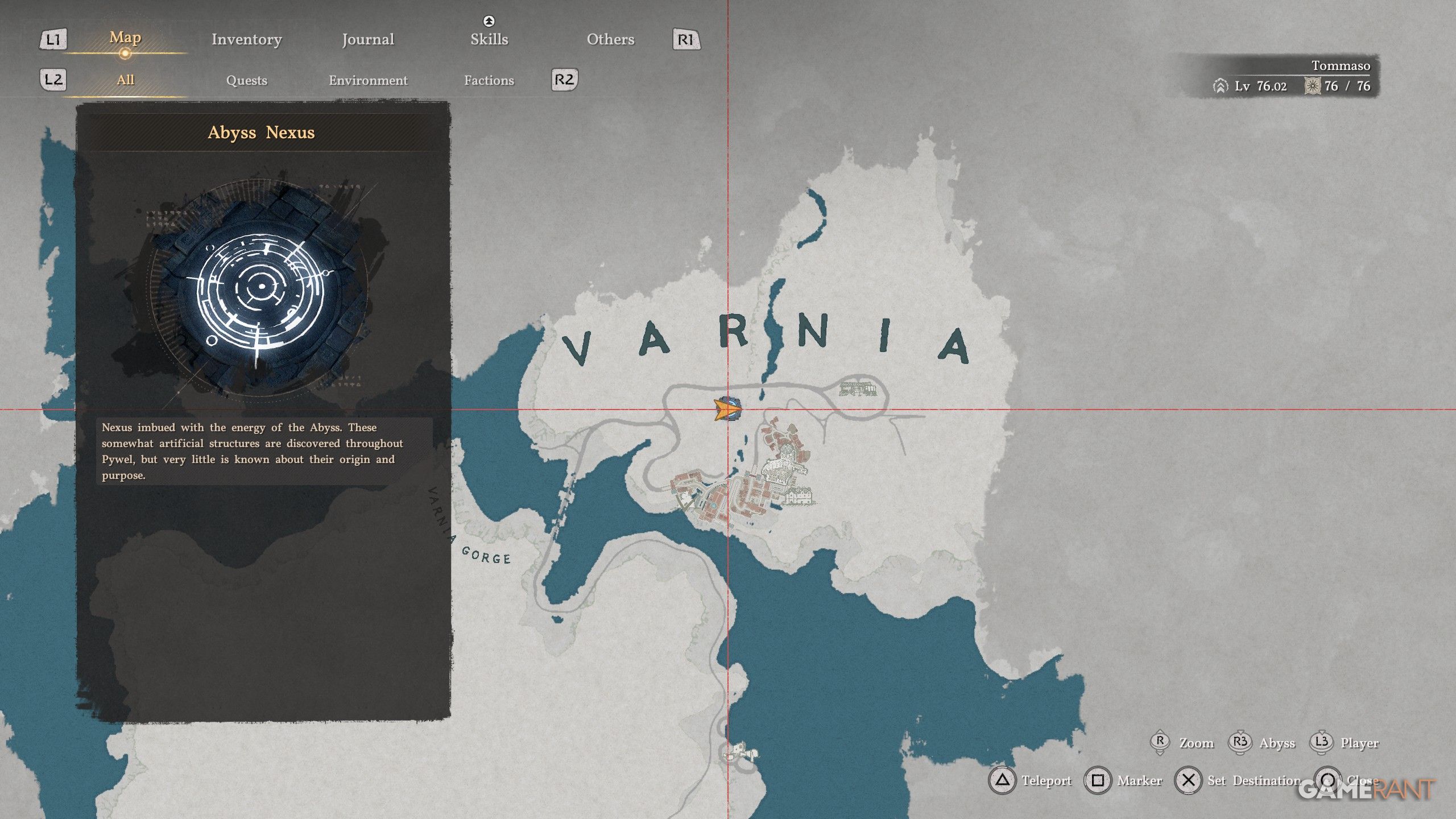 To find the Abyss Nexus fast travel point, go under the letter “R” in “Varnia”. You’ll find a platform there that lets you quickly return to this spot – we’ve highlighted its location on the map.