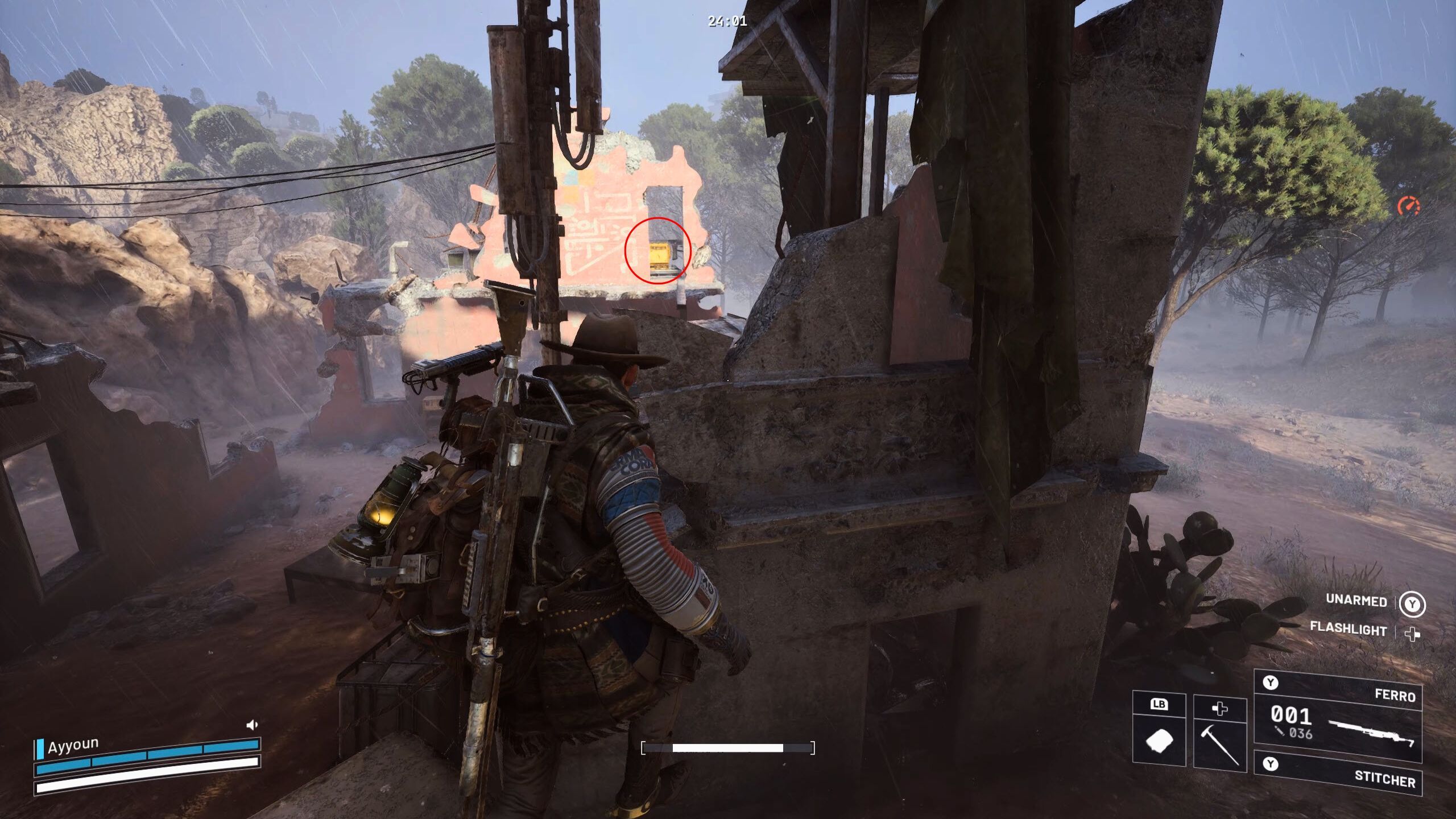 To find the second Power Switch, go down the hill towards the ruined house. Climb onto the generator outside the house to get to the second floor. The switch is located inside a room at the back of the building.