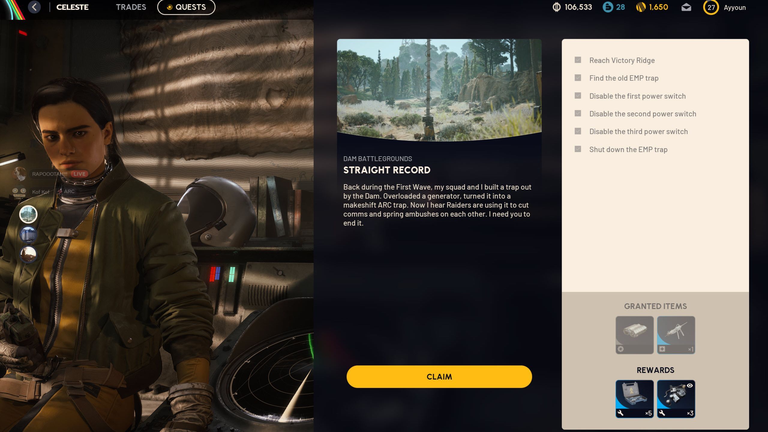 After shutting down all the Power Switches, disable the Old EMP Trap and finish the Straight Record quest in ARC Raiders. Then, safely return to Speranza to receive your reward from Celeste: 5 Medium Gun Parts and 3 Advanced Mechanical Components.