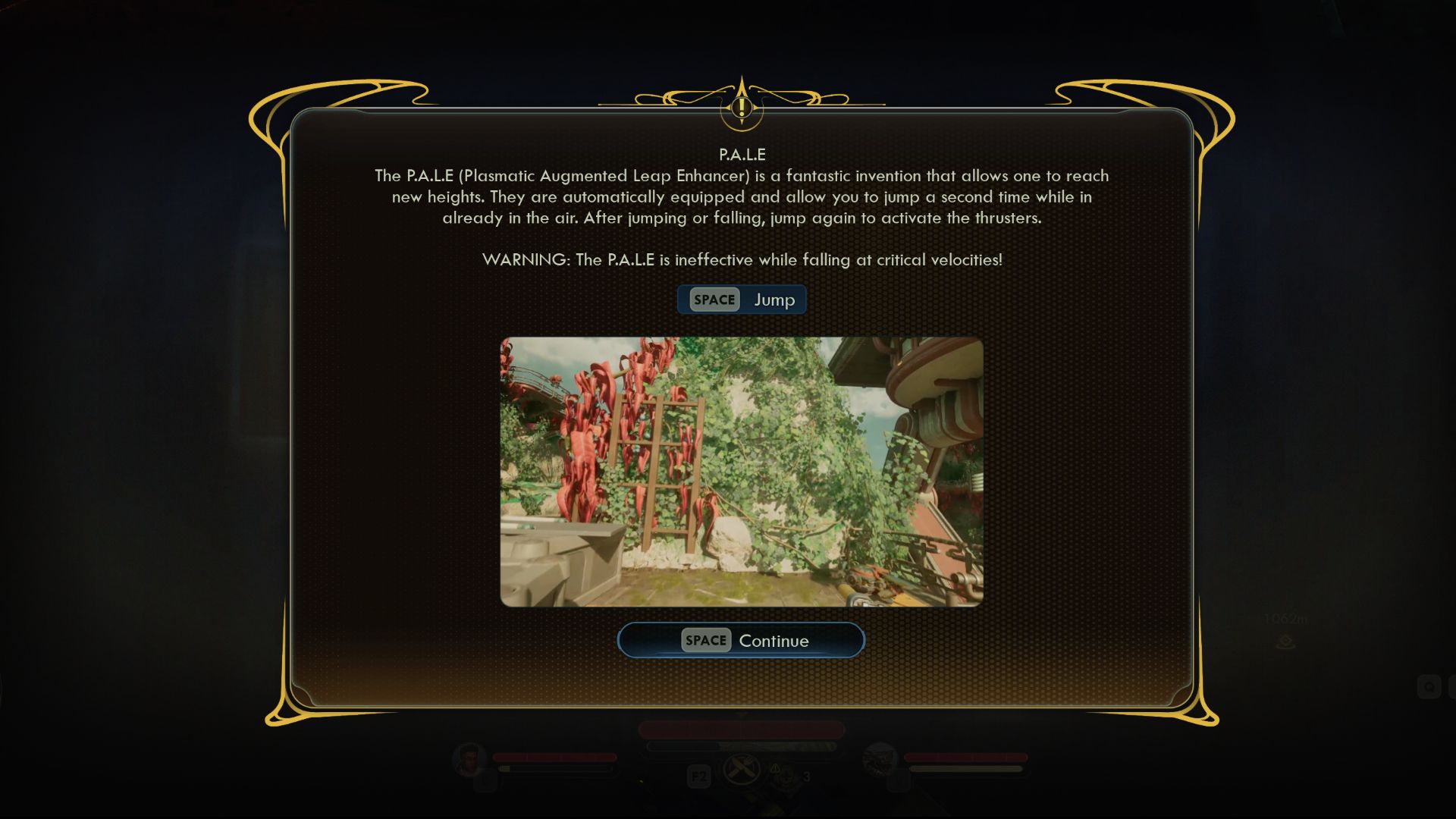 - The P.A.L.E. (Plasmatic Augmented Leap Enhancer) boots grant you the ability to double jump, but they can only be activated if you aren’t falling at a high velocity – so no saving yourself from deadly fall damage!