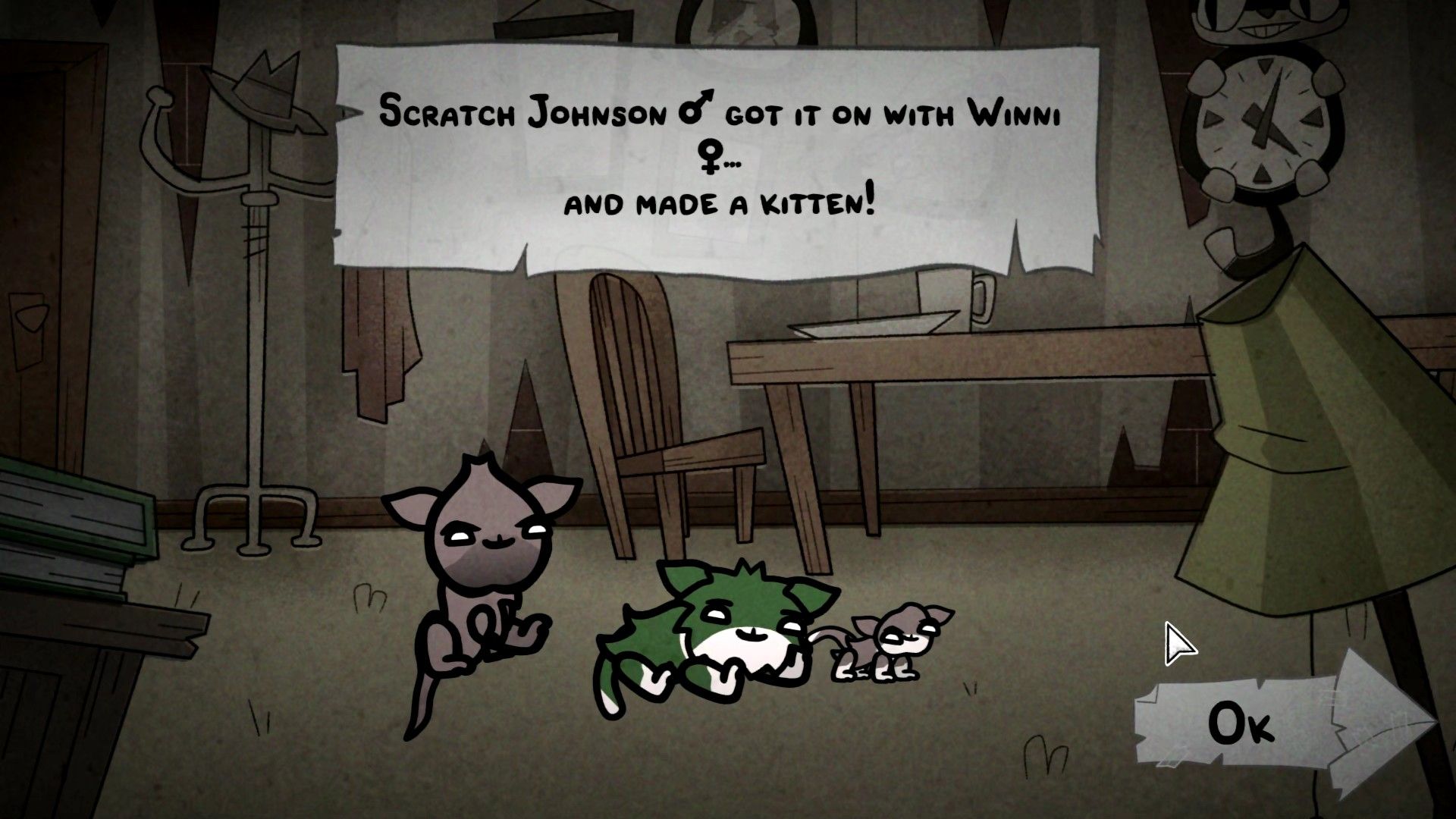 Beating these enemies rewards you with items and lets you continue the game, but you don’t actually need to win. If you lose, your retired cats simply pass away.
