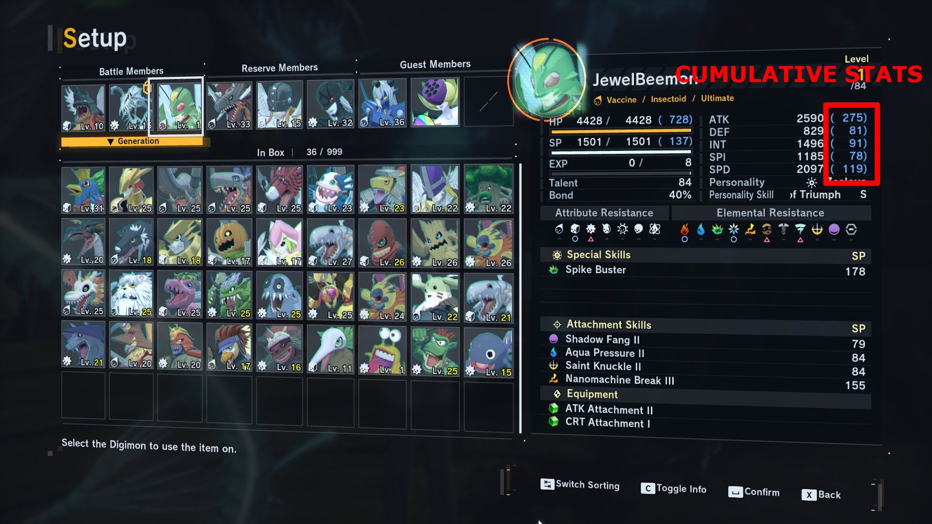 - Digivolve the Digimon to convert a portion of the stats it earned into Cumulative Stats.