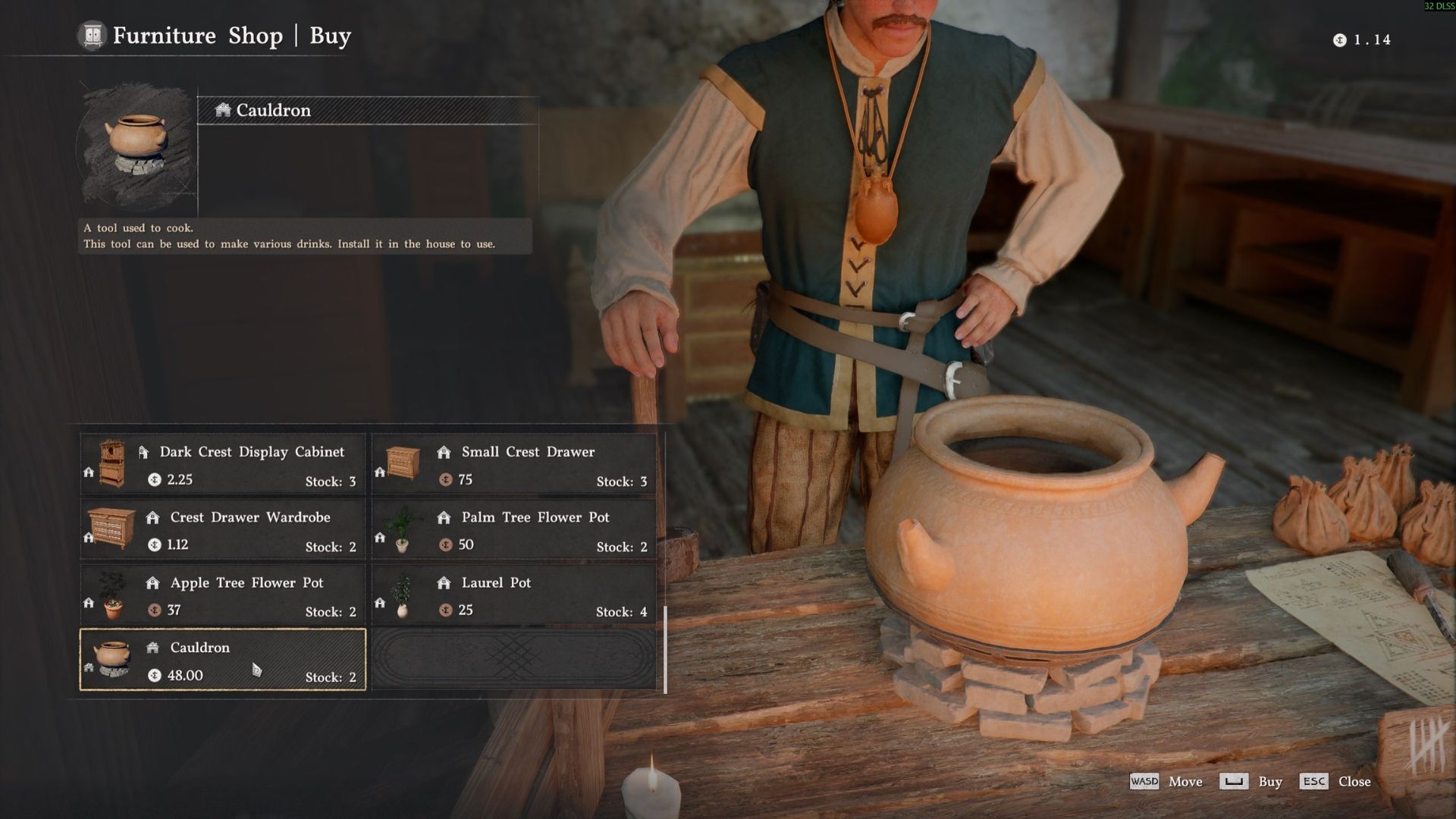 4. Purchase the Cauldron for 48.00 Silver.