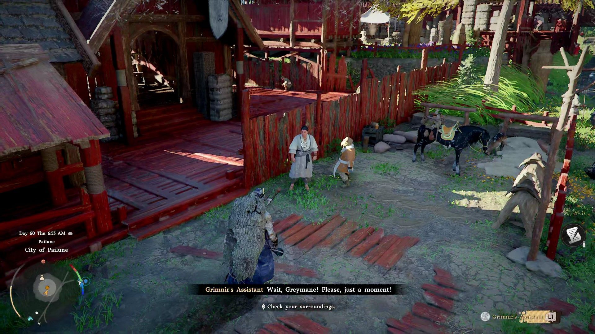 When Pailune is completely set up, you’ll start the Fire Breathing Pack faction quest. This quest requires you to locate Grimnir’s assistant on the southern edge of Pailune city.