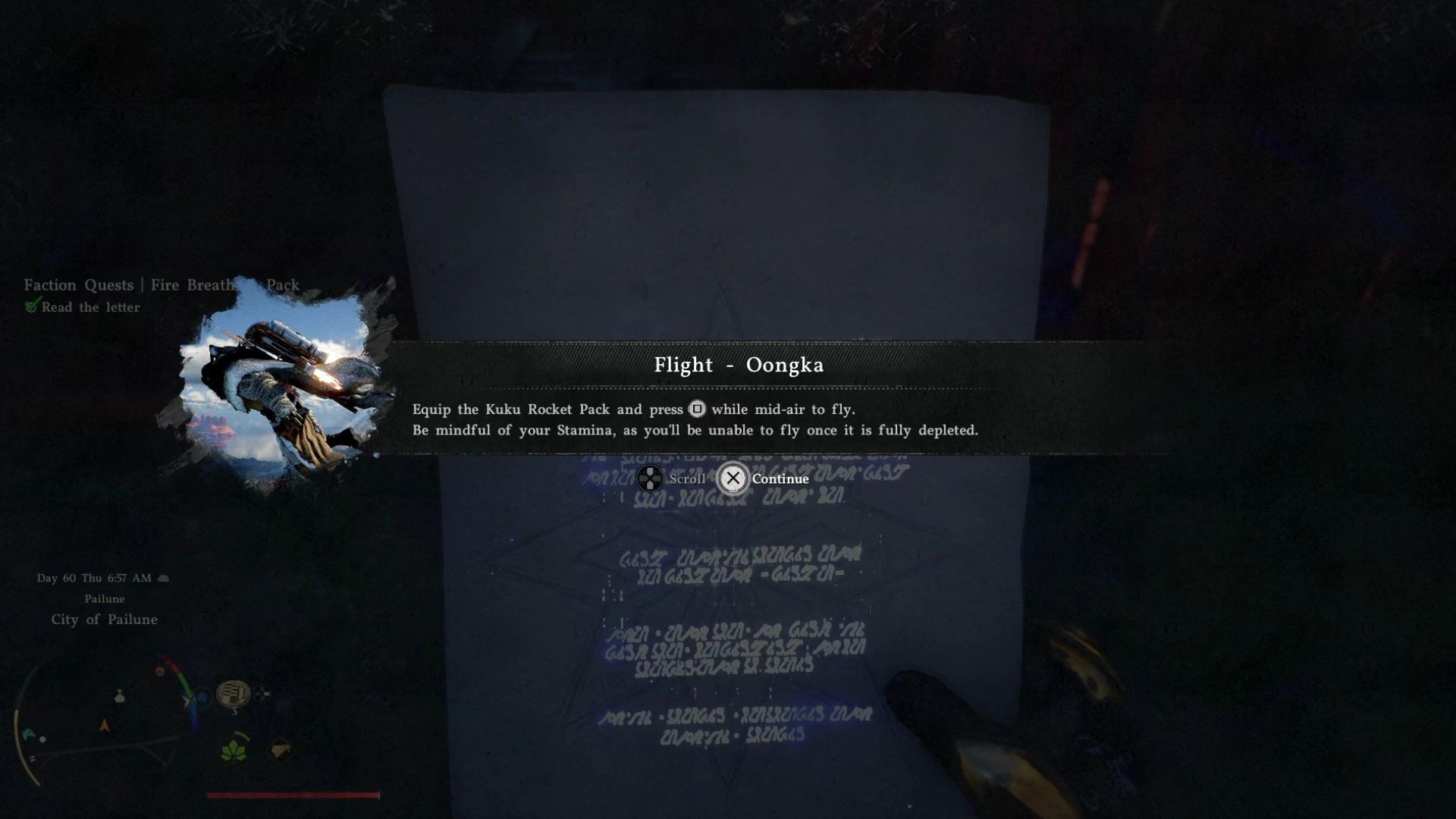 If you approach Grimnir’s assistant, he’ll give you a note. This note, called “Letter from Grimnir,” contains instructions for building a Kuku Rocket Pack – the game’s jetpack.