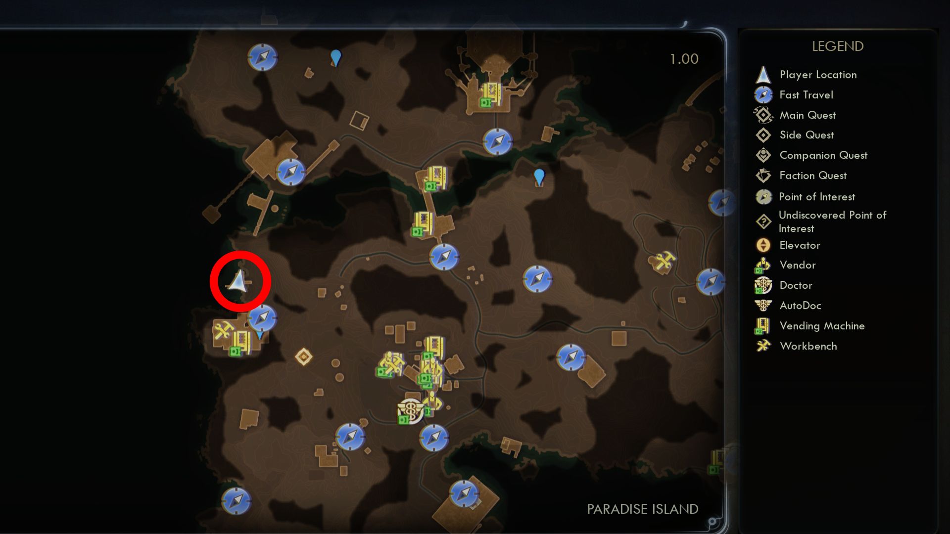 - Other Notes: Head northwest from the Skycutter power station on the far western coast of Paradise Island. You can also get here by fast traveling to the Drop Pod Landing Zone then going directly north.