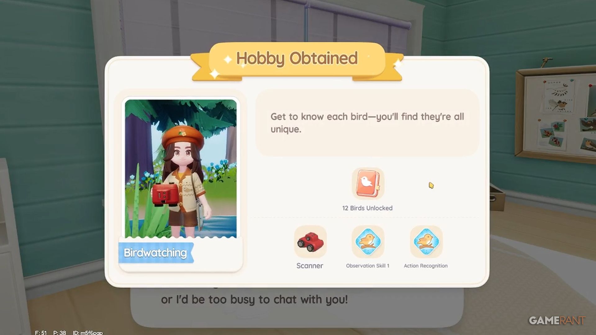 You can’t start birdwatching right away; it unlocks as you progress in the game. It becomes available as part of the Developer Level 6 questline. Once you reach Level 6, talk to Bailey J., who will explain how birdwatching works. You’ll then need to chat with the other hobby instructors before making your choice. Finally, give Bailey J. a Hobby Expansion Ticket to unlock the birdwatching hobby.