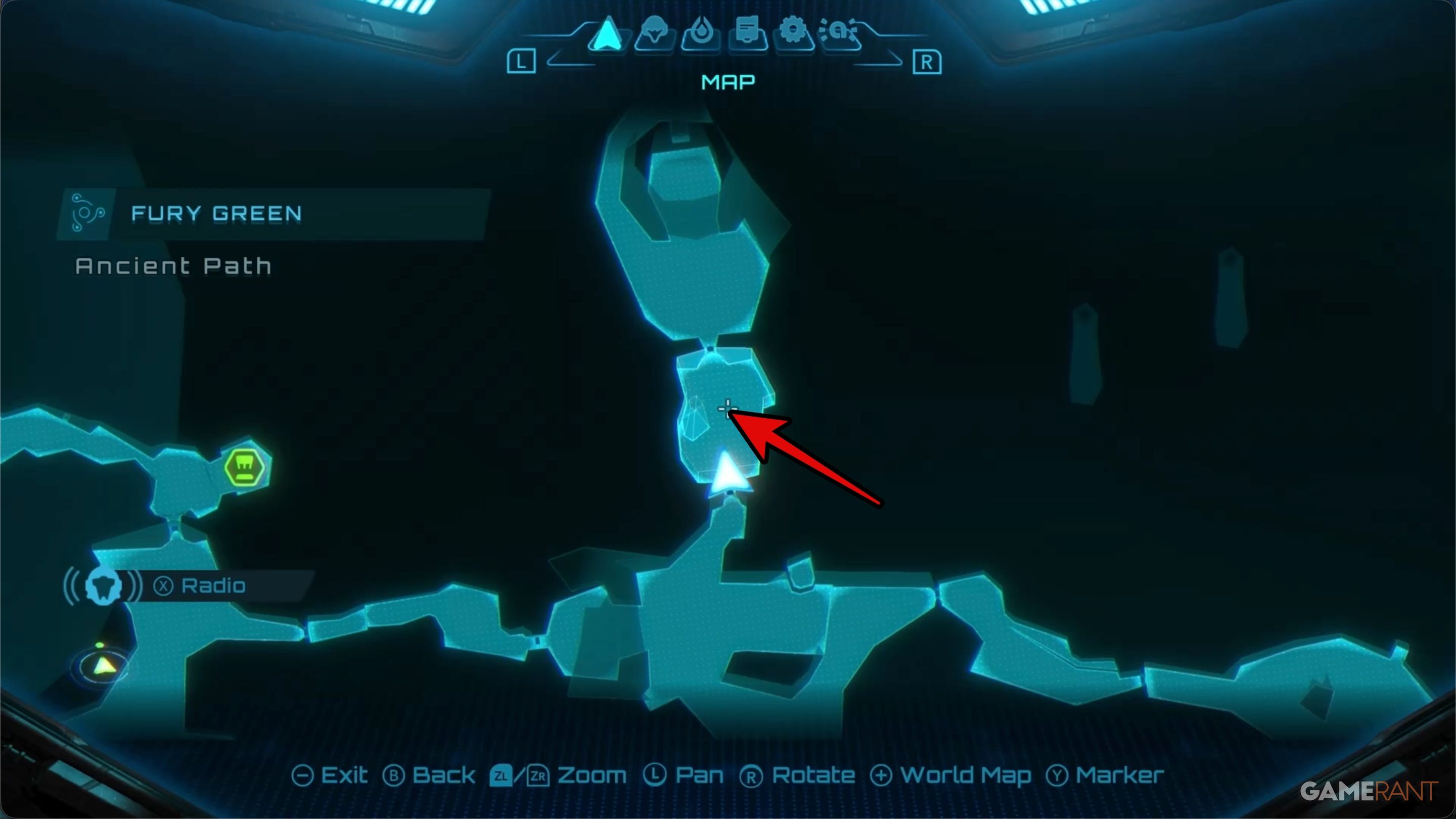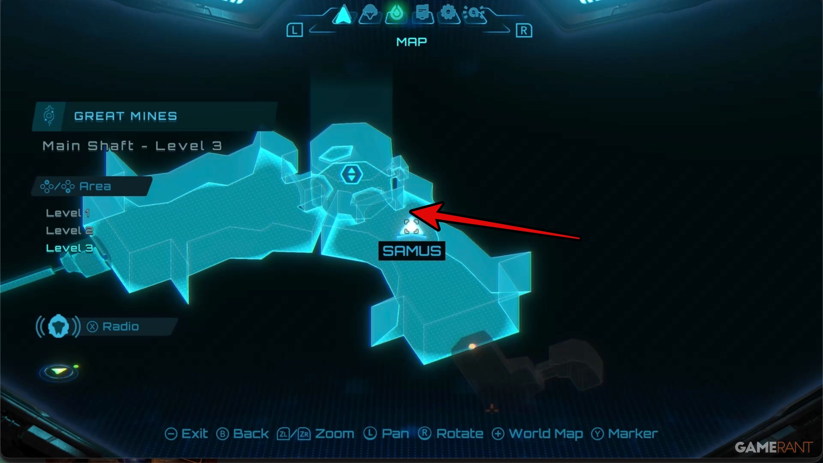 After the Scout Bot finishes scanning, it will drop to the ground and become inactive. The map will then display a small orange cross to indicate the location of any undiscovered items, particularly upgrades like Missile and Shot expansions, and Energy Tanks.