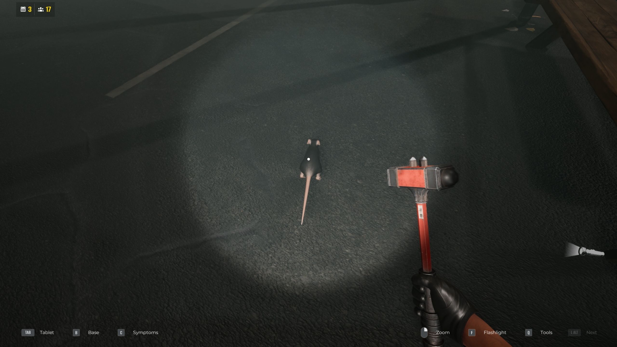 Rats are quick to run away, so you’ll need to be sneaky to get close. Crouching helps you approach them before they escape. In Quarantine Zone: The Last Check, you can crouch by pressing the Left CTRL key on your keyboard, the B button on an Xbox controller, or the O button on a PlayStation controller.