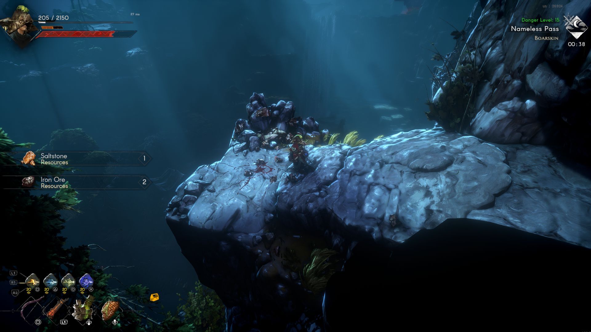 Okay, so I’ve been grinding for Saltstone, and it looks like the best place to find it is by mining Iron Ore. You can find Iron nodes all over the Nameless Pass, so that’s where I’m heading to stock up!