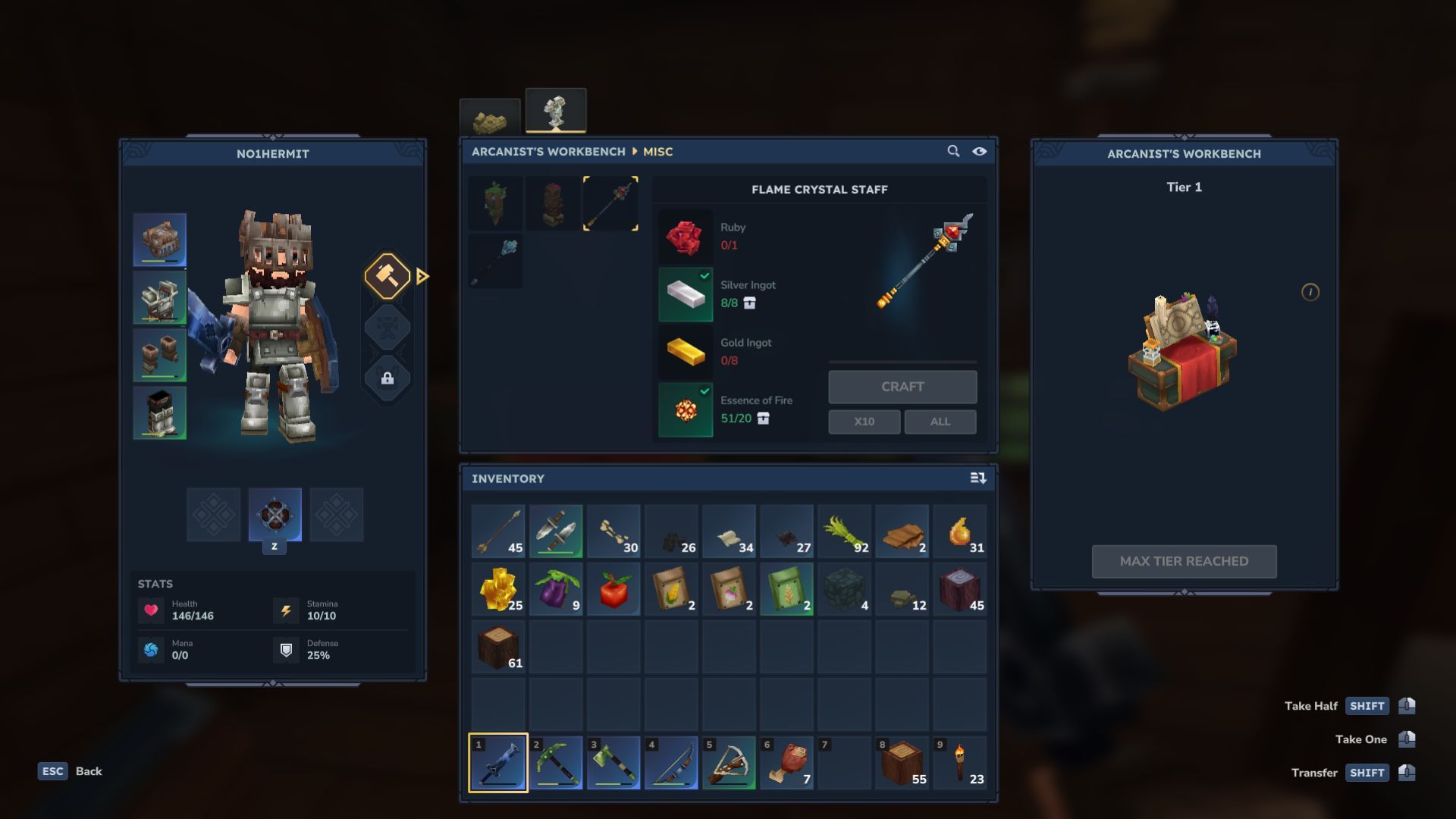 Gold and silver are unique ores. Unlike other ores used for crafting regular weapons and armor, you’ll need an Arcanist’s Workbench to transform gold and silver bars into magical equipment.