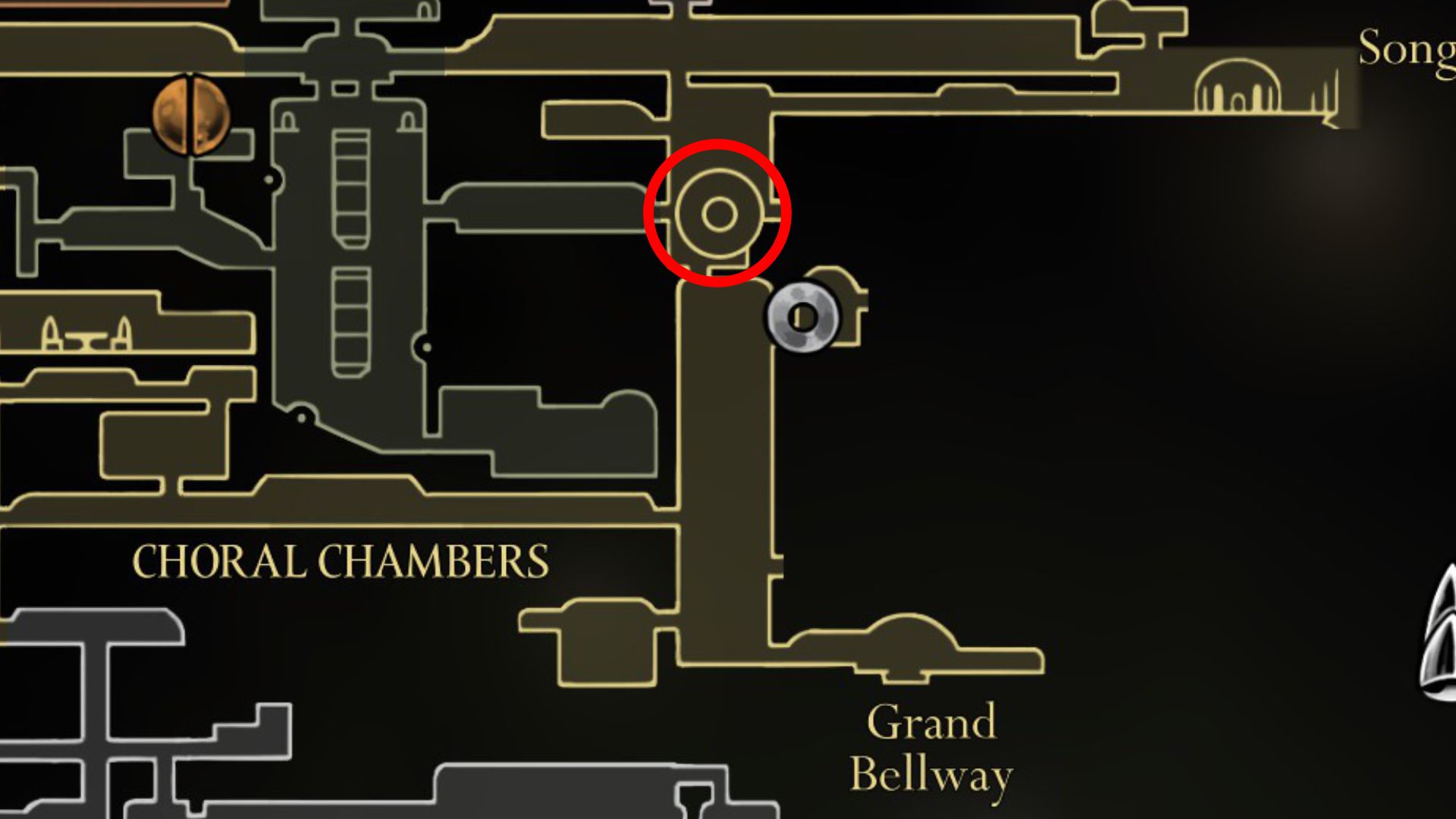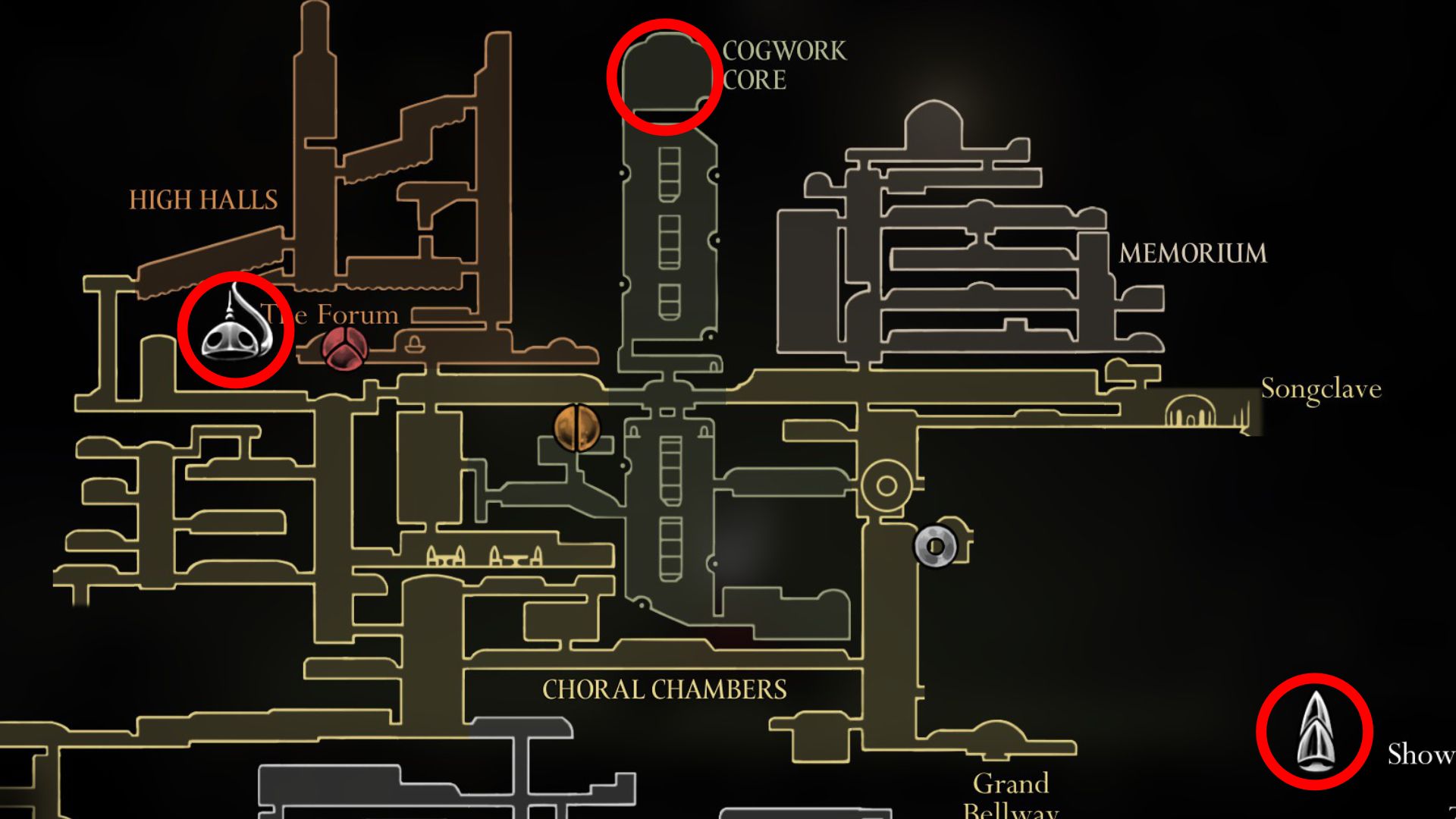Instead, retrace your steps to the Cogwork Dancers arena and descend. This will take you to the Cogwork Core, a sub-area with similarities to the Path of Pain from Hollow Knight. After descending three levels, make your way down, turn right, and then move upwards to reach the other side of the central pillar in the lower portion of this room.
