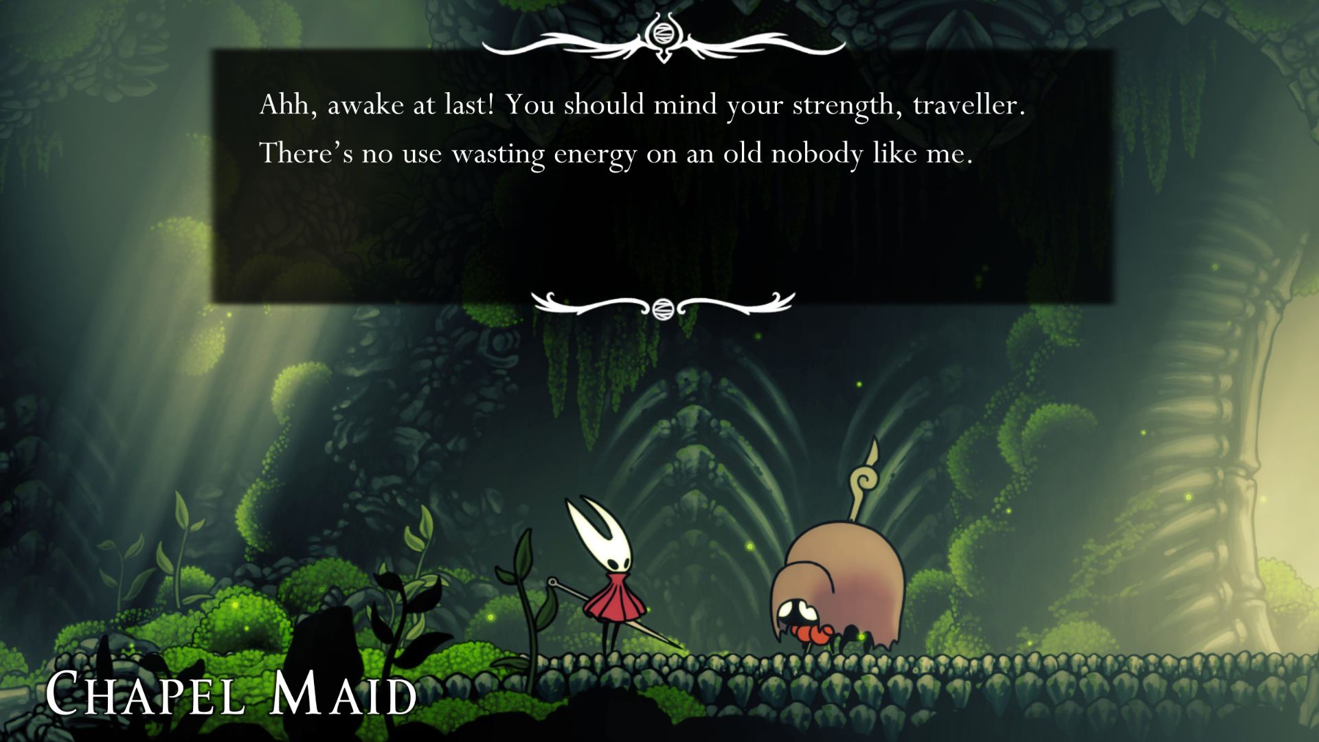 - After entering the town, sit on the bench to save your progress, then talk to the Little Pilgrim just to the right of the bench to learn a little bit about Bone Bottom and why these bugs are here.