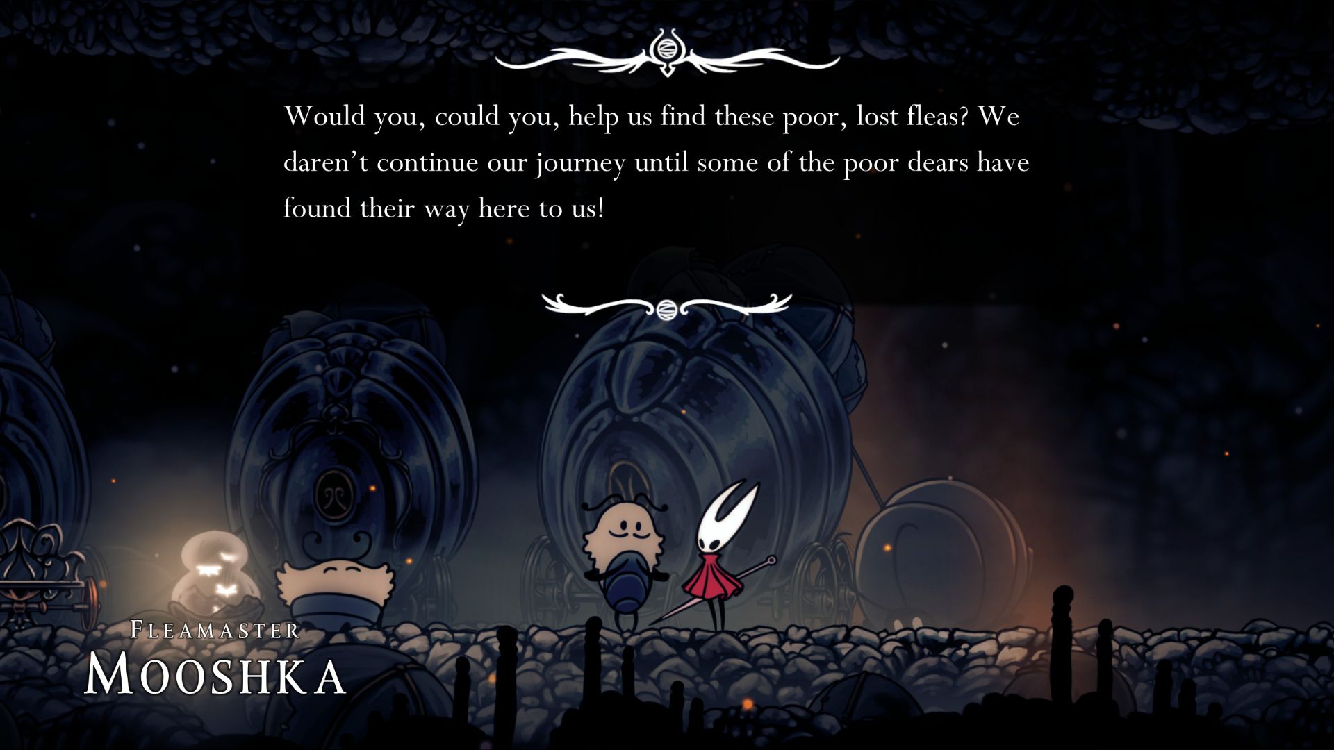 As you traverse the locale, watch for a marker bearing an image of a plush insect – it’s a Flea Caravan sign. This will guide you to Fleamaster Mooshka and his remnants of the Flea caravan. Fulfilling his desire to reassemble the scattered fleas across Pharloom, initiates your journey to locate fleas in the concealed corners of the world – an experience akin to hunting for Grubs in Hollow Knight.