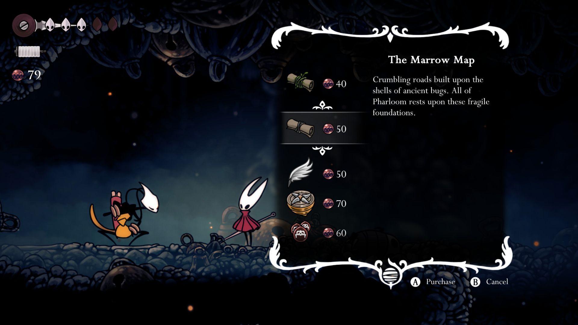 At the start of the game, players of Silksong won’t find a map available to them. You’ll only be able to acquire one after advancing considerably through The Marrow zone. Once you reach the chasm containing the Shard Pendant, head upwards. Exit the tall room located on the farthest left side from there, and continue to move towards the left. Eventually, you will encounter Shakra.