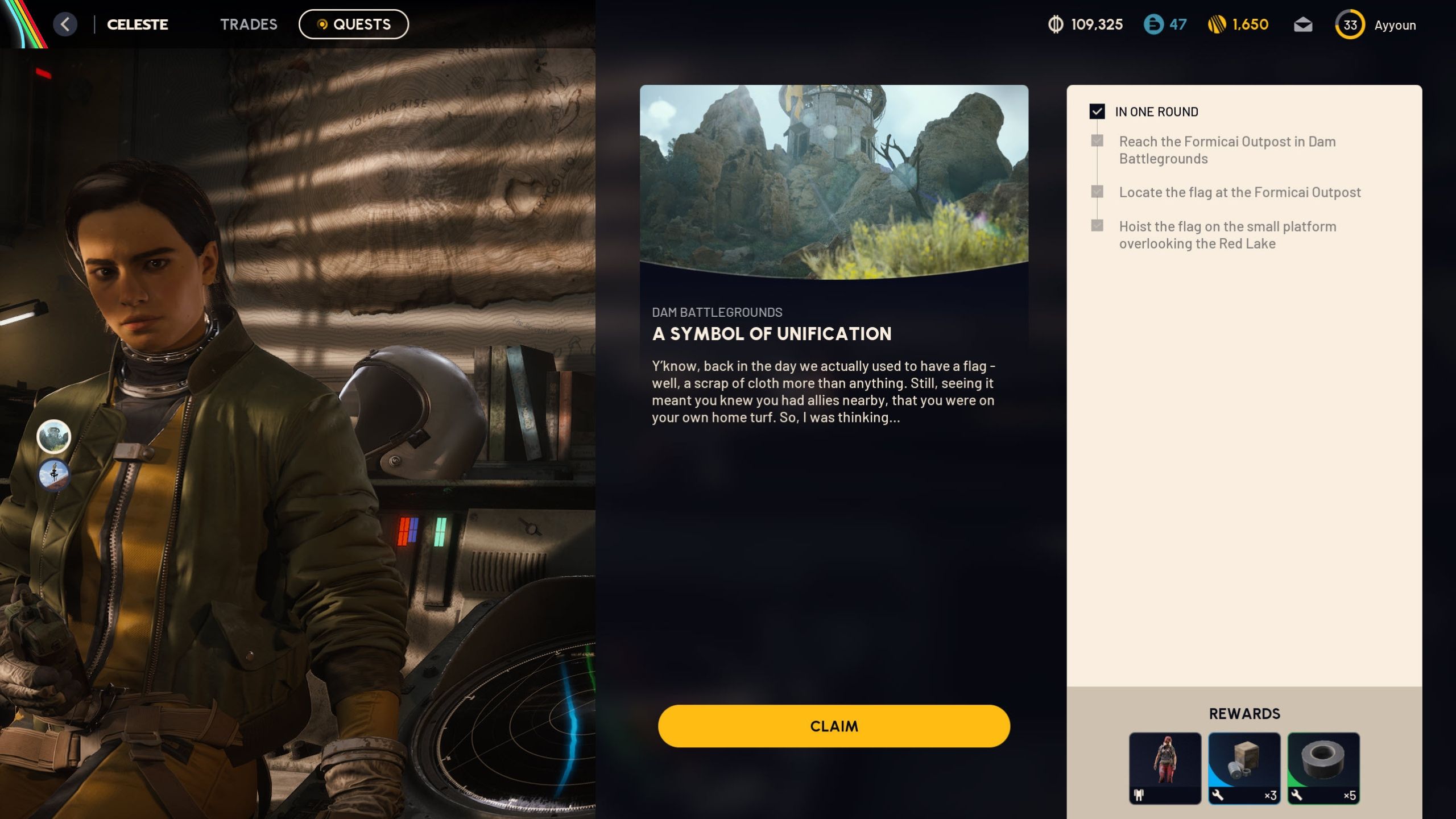 You can now leave the Dam Battlegrounds and head back to Speranza. Completing the “A Symbol of Unification” quest in ARC Raiders will reward you with an Aviator outfit, 3 Mod Components, and 5 Duct Tape.