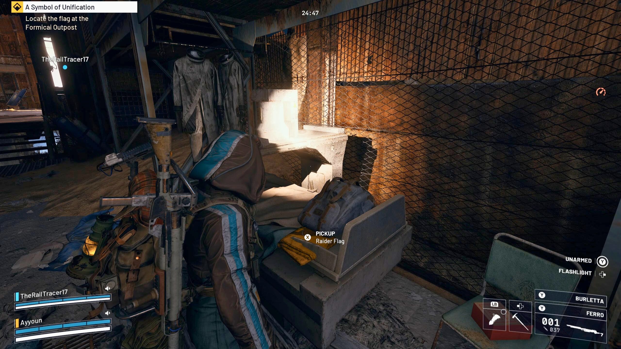 Once you enter the Formicai Outpost through the back entrance, look to your right for a bed. There’s a yellow backpack on it – open it to find the Raider Flag. Getting this flag completes the second step of the ‘A Symbol of Unification’ quest in ARC Raiders. Finally, you need to place the flag on a platform that overlooks Red Lake.