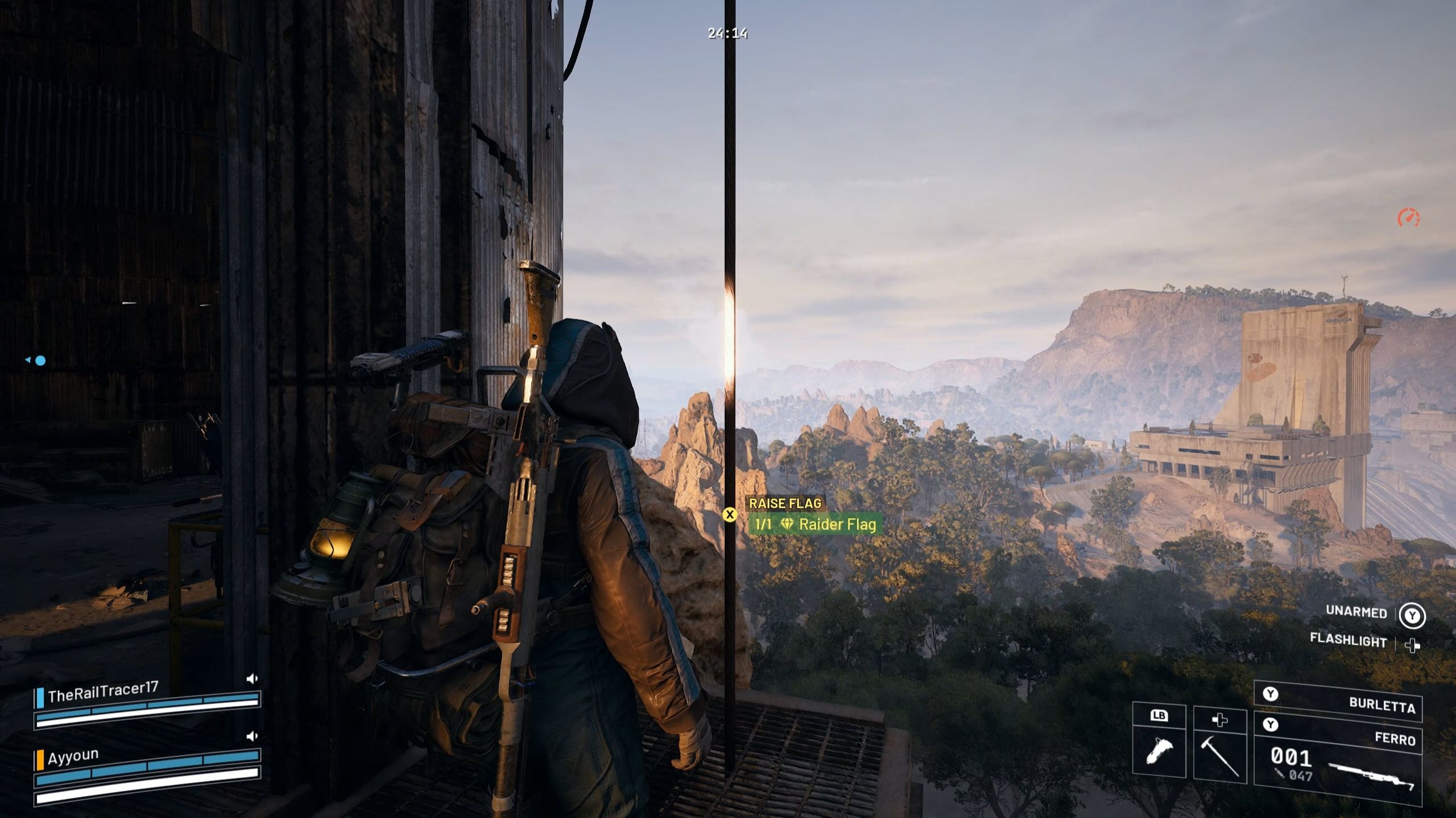 When you reach the platform, you’ll be able to see Red Lake. Look to your left for a flagpole where you can raise the Raider Flag. Once the flag is raised, you’ll finish the quest.