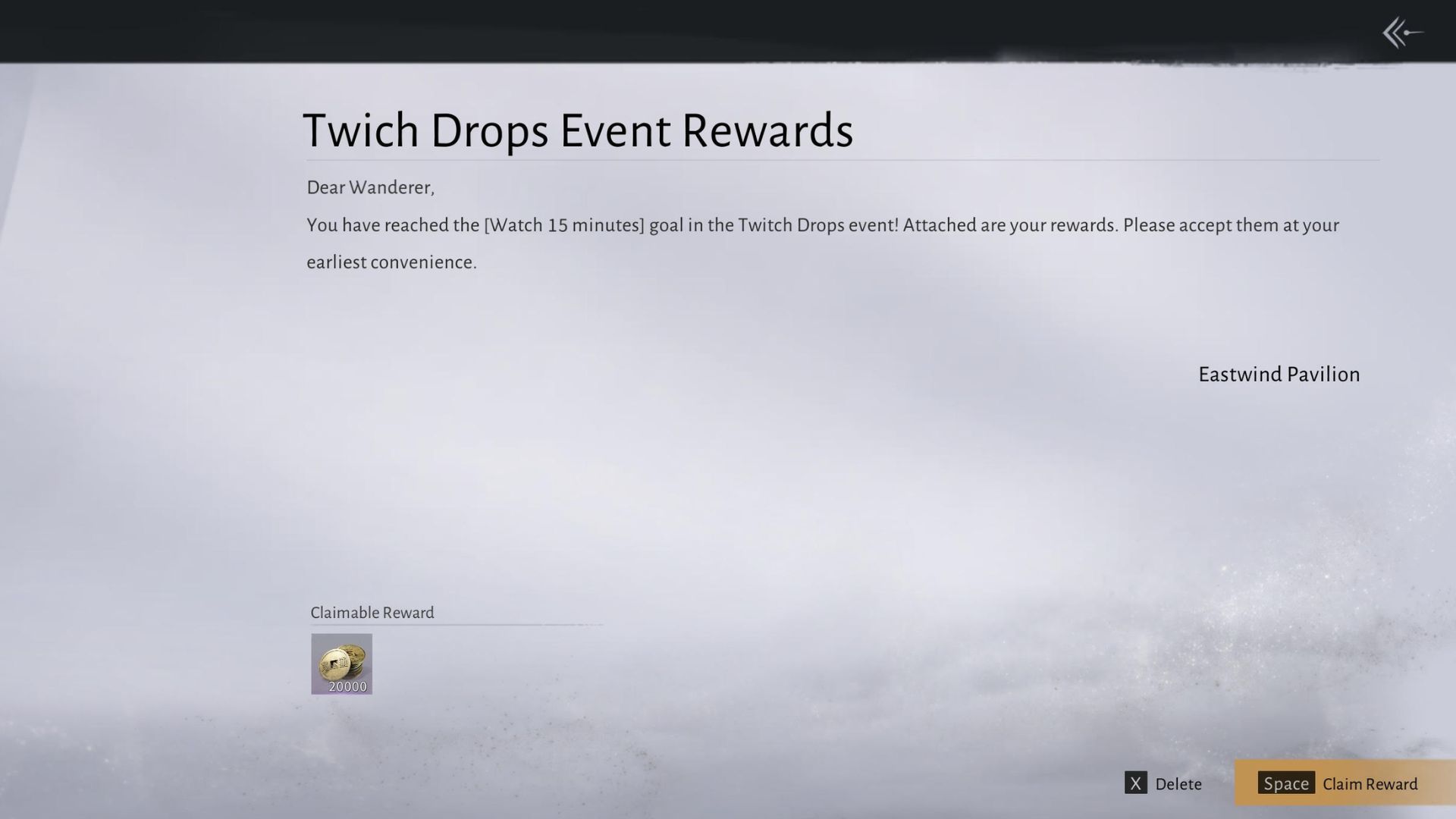 - To claim your reward, open your Twitch Drops Inventory, select the unlocked item, and click Claim Now. After claiming, your rewards will be sent to your in-game Mailbox. You can access them from the Menu > Letter. It’ll take a few minutes to deliver.