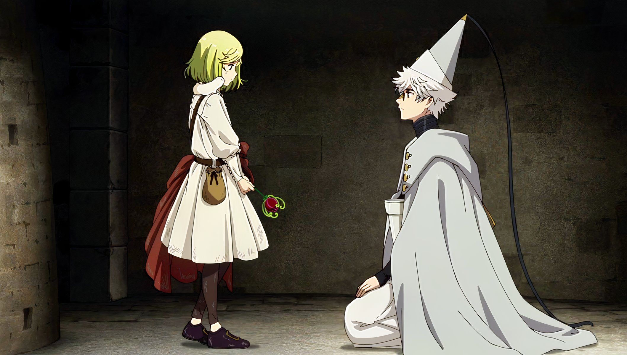 In the third episode, Coco achieved something remarkable. Another apprentice, Agott—who isn’t particularly fond of her—challenged her to prove her worth by retrieving a Diadem Herb from the summit of the treacherous Dadah Range. Coco felt overwhelmed, as she was still learning magic, but motivated by her desire to save her mother, she persevered. She used her ingenuity to overcome the obstacles and reach the peak. Agott was unhappy with her success, and Qifrey scolded her for taking such a dangerous risk. Despite his concerns, he was clearly proud, officially recognizing Coco as a true apprentice and presenting her with the iconic green uniform.