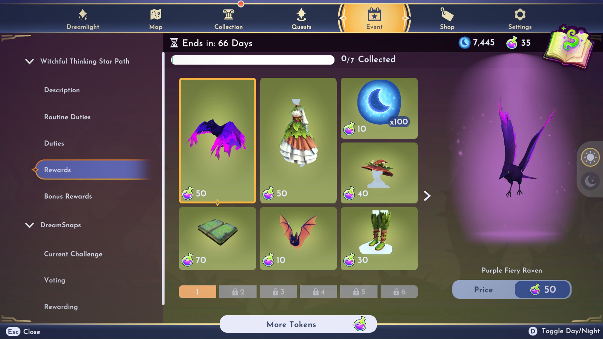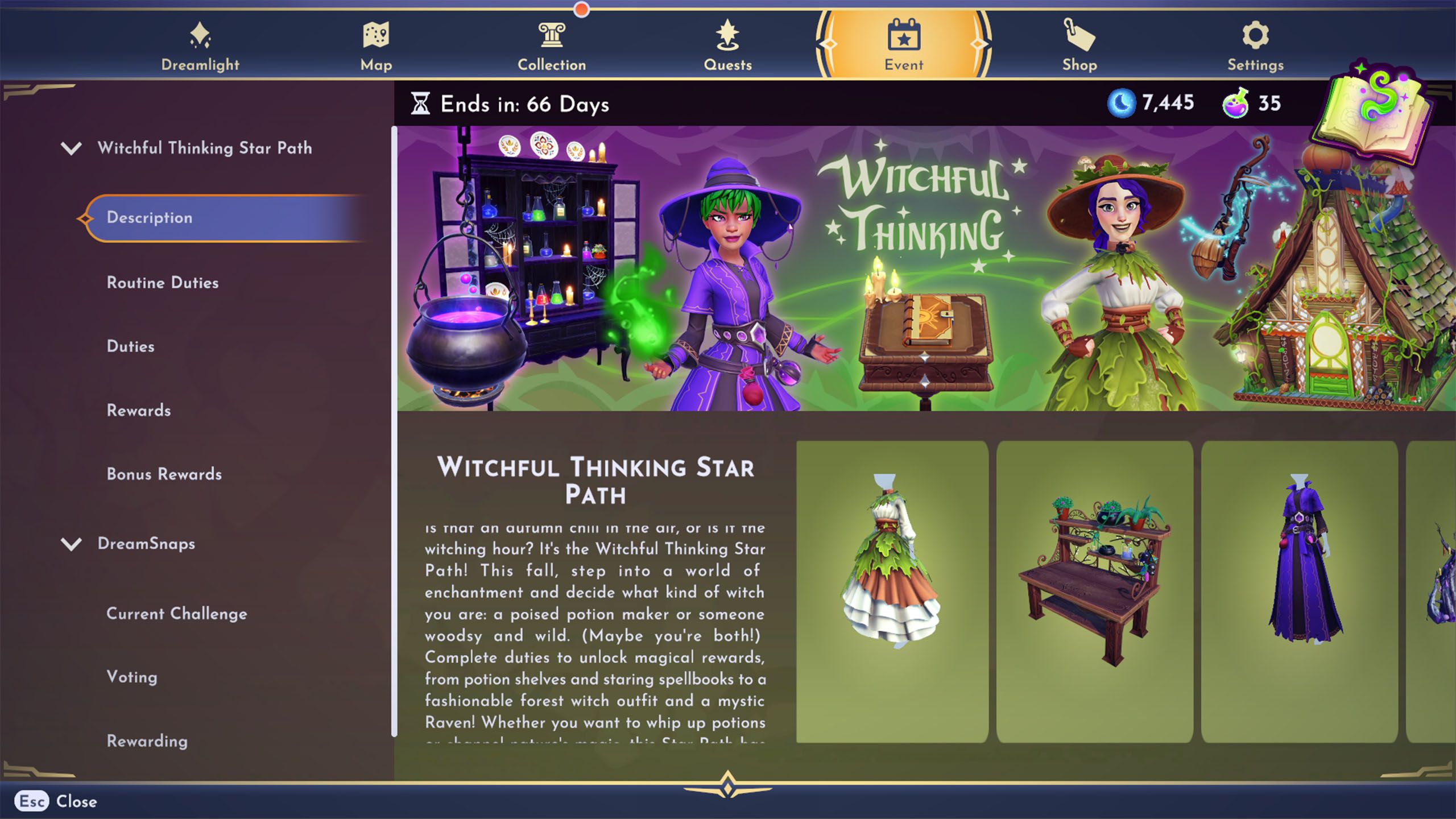 The Witchful Thinking Star Path is finished by completing everyday tasks to unlock all the rewards in DDV. You earn Tokens for each task, and Dreamers can spend these Tokens on Motifs, items, outfits, companions, and a variety of other rewards.