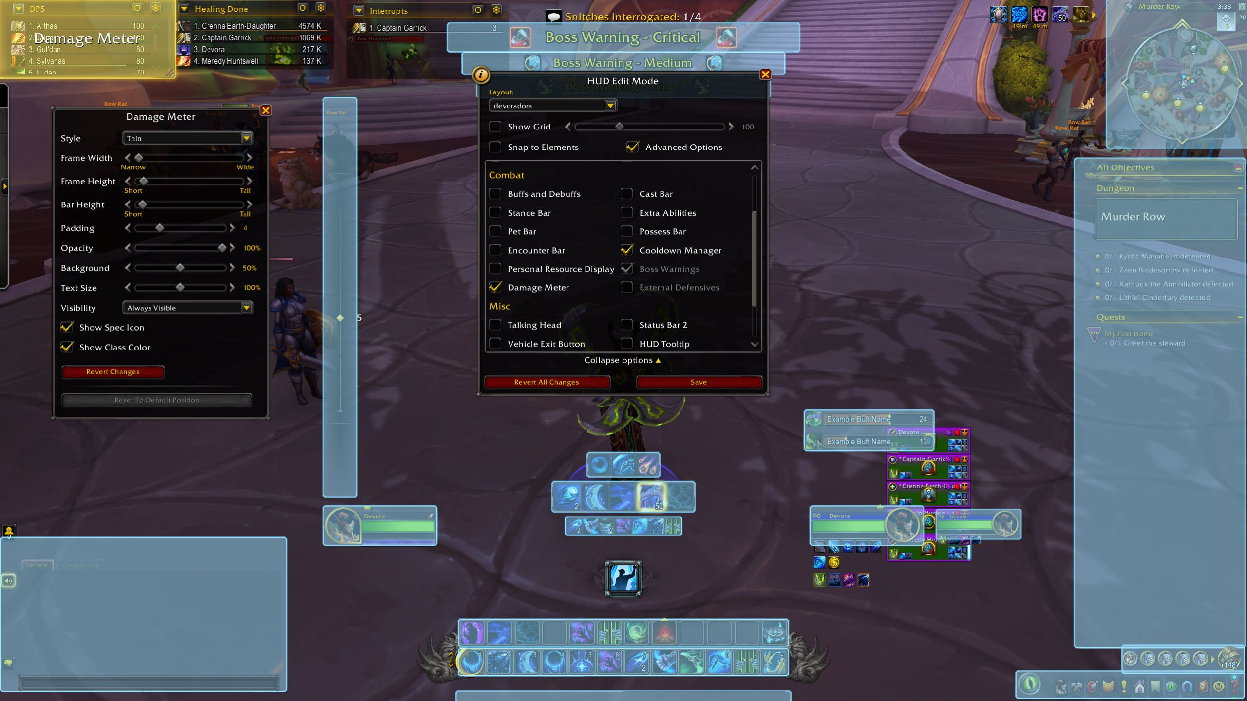 - Customization settings for the Damage Meter are available in Edit Mode allowing the adjustment of settings such as bar dimensions, presentation styles, visibility rules, and class and spec visualization.