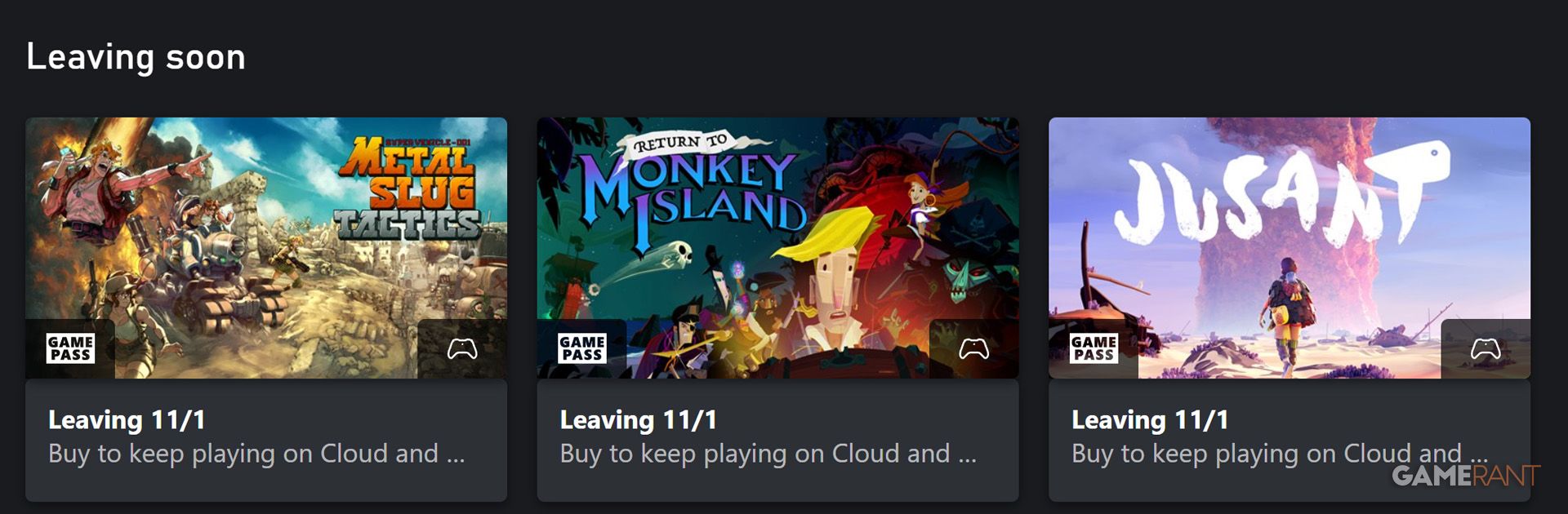 Starting October 31st, three games will be leaving the service: *Return to Monkey Island*, *Jusant*, and *Metal Slug Tactics*. Of these, *Return to Monkey Island* is the most critically acclaimed. It received overwhelmingly positive reviews, with a 97% recommendation rate and an average score of 87 on OpenCritic (based on over 100 reviews). This places it among the top 2% of all games on the platform and makes it one of the highest-rated titles currently available through Xbox Game Pass.