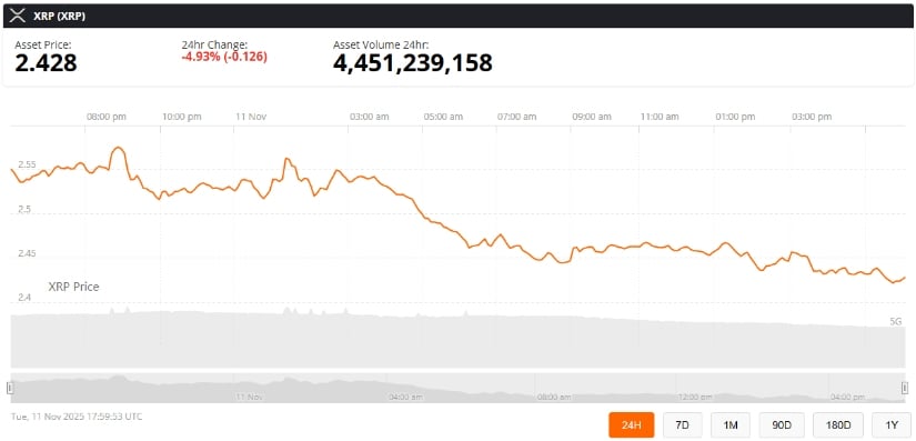 Currently, XRP is trading around $2.43-$2.46, a modest pullback after its recent rally. Analysts say the combination of Ichimoku Cloud strength, institutional accumulation, and the ETF launch could set the stage for a major price surge. 📊