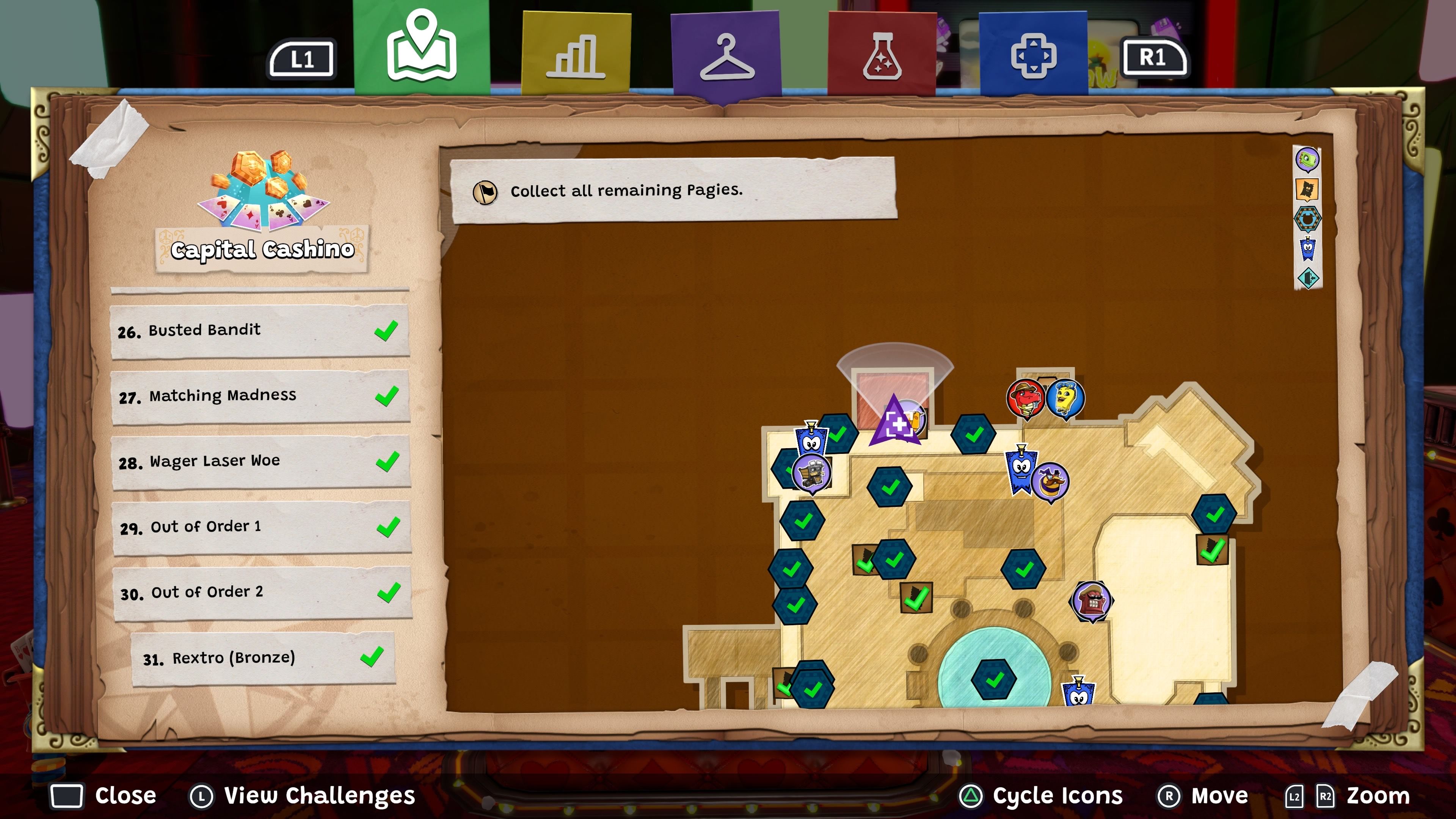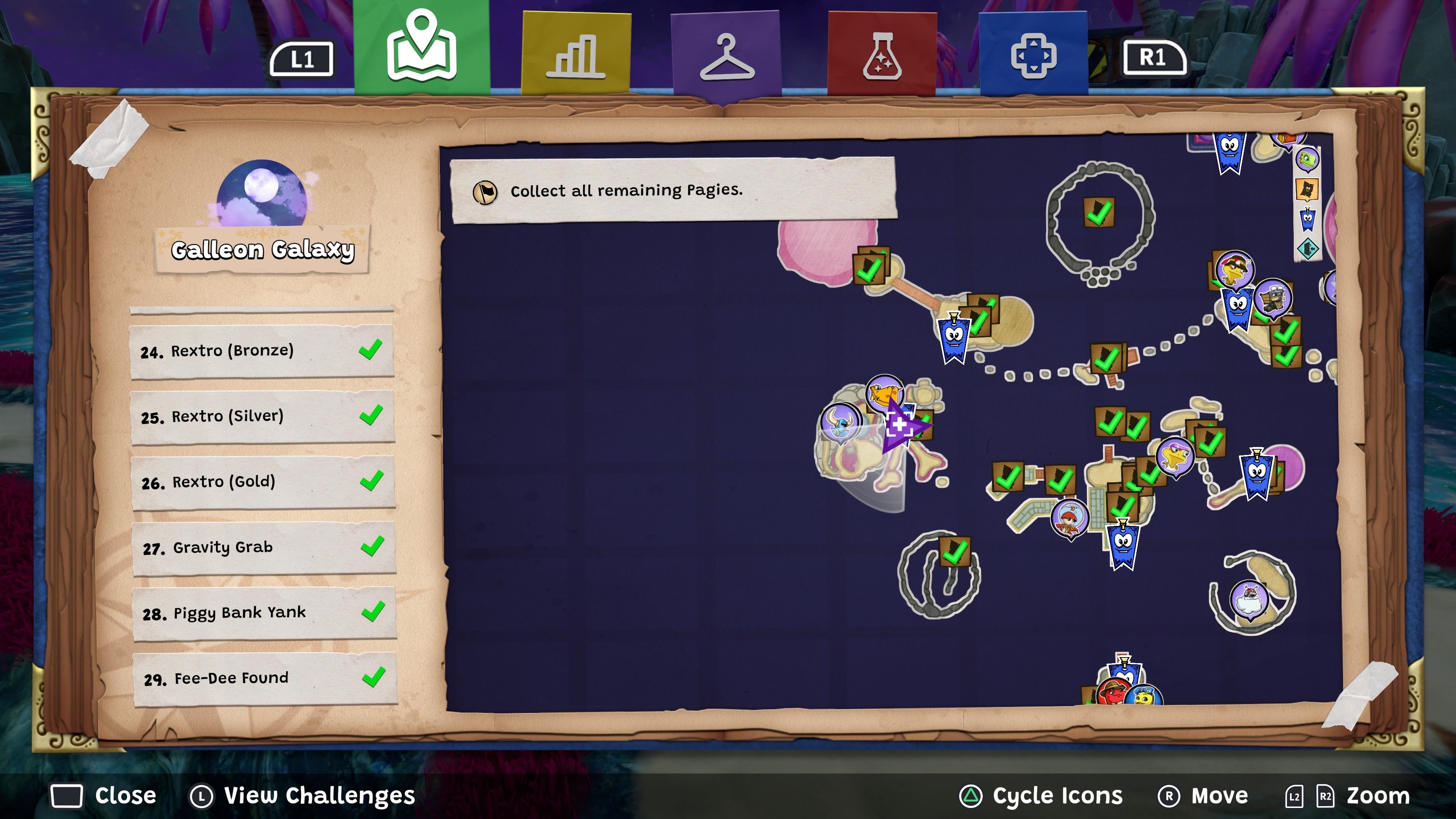 Don’t forget to find the arcade inside Hivory Towers, which is between the second and third floors. Playing the arcade games with the Play Tokens you collect will unlock more levels, helping you earn all 24 Pagies from the Rextro challenges. Completing all the Rextro levels will also award you three trophies.